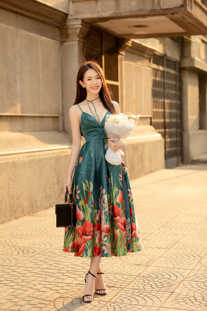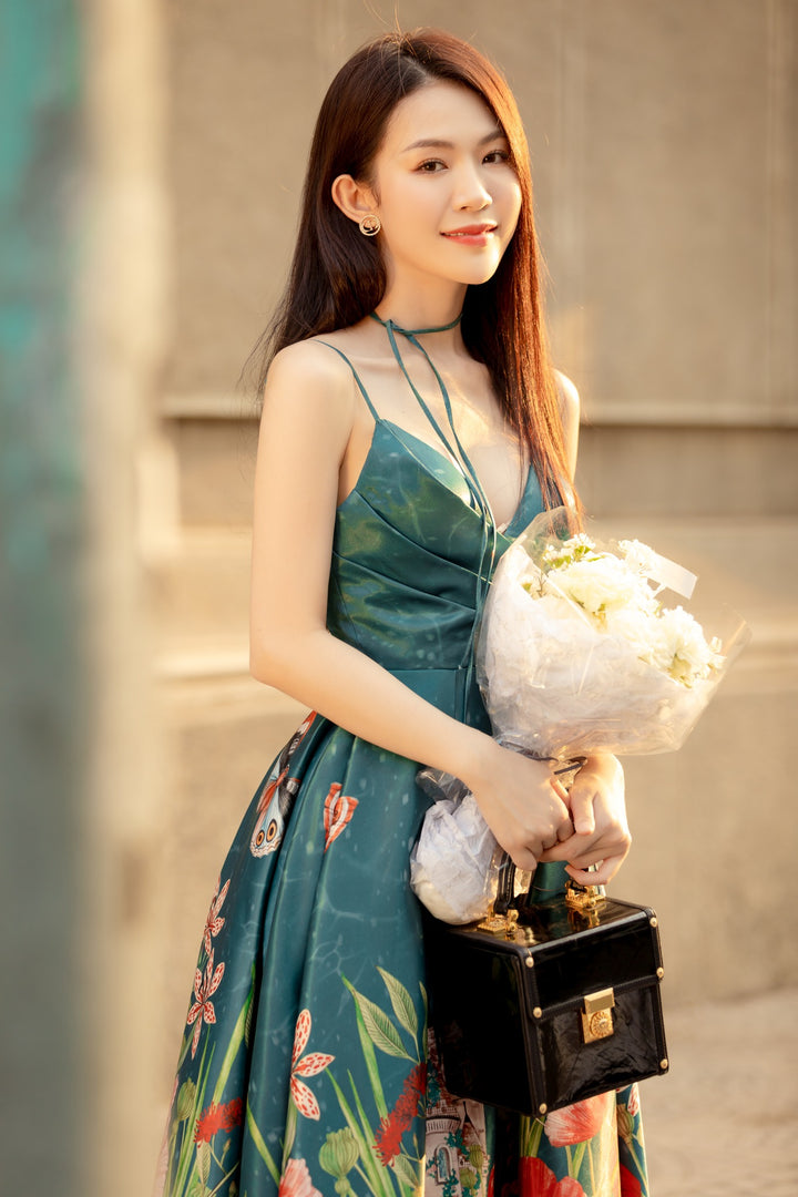 Adele Dress - Đầm hai dây ngực đổ in họa tiết