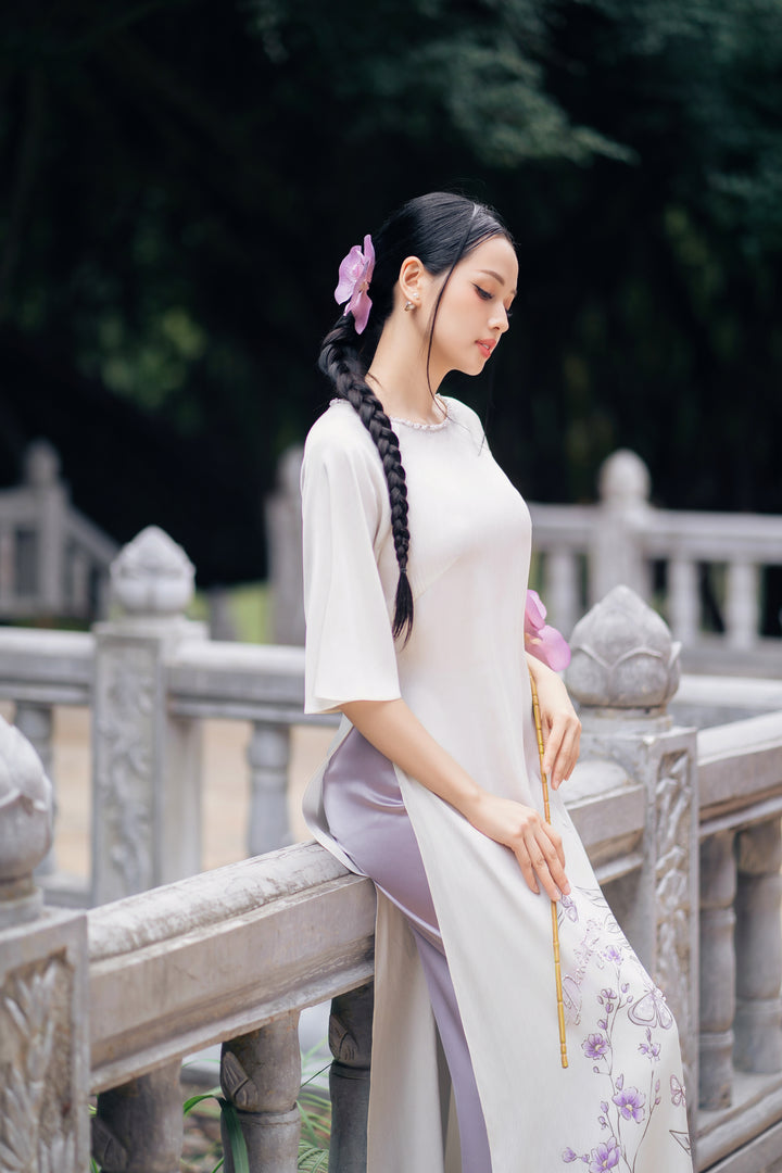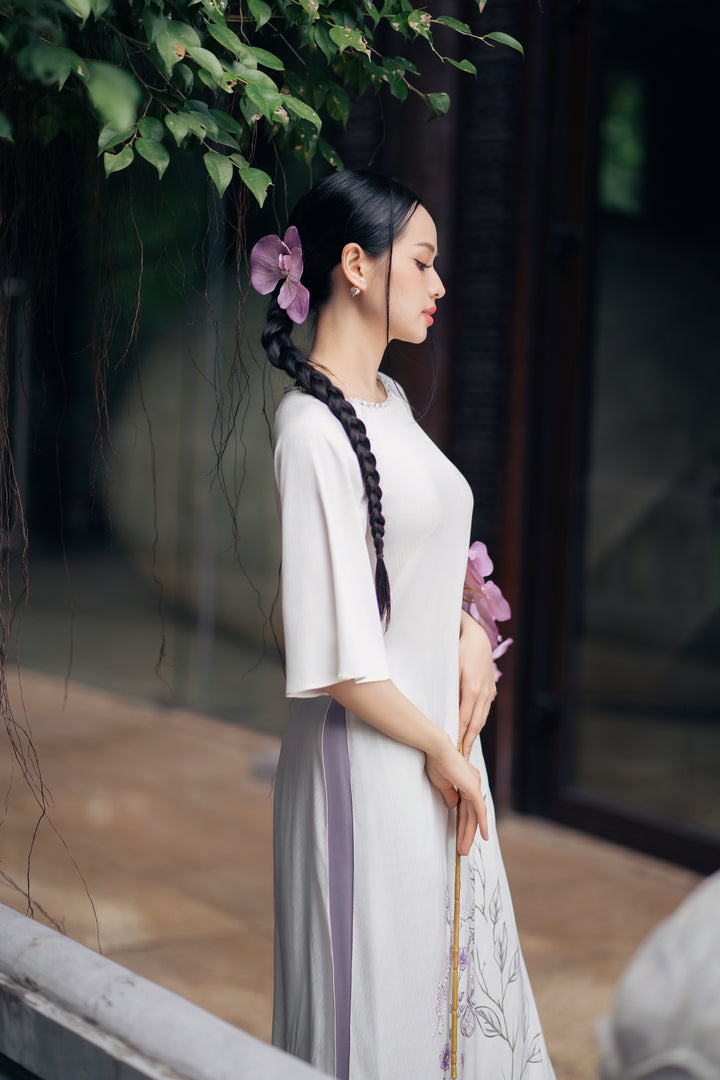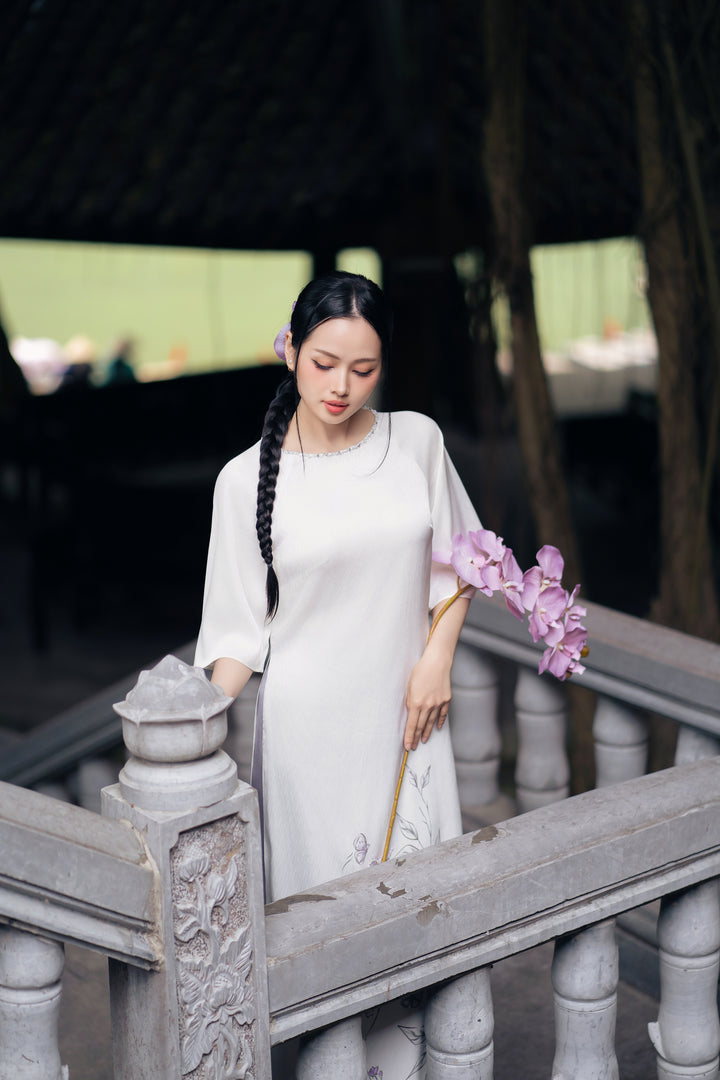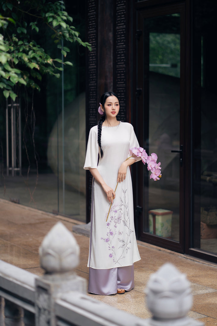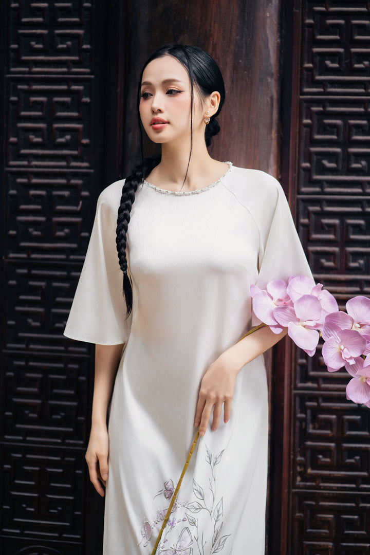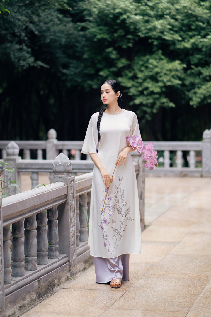 Áo dài Châu Đan - Áo dài tay lỡ đính kết dáng suông & Quần áo dài trơn
