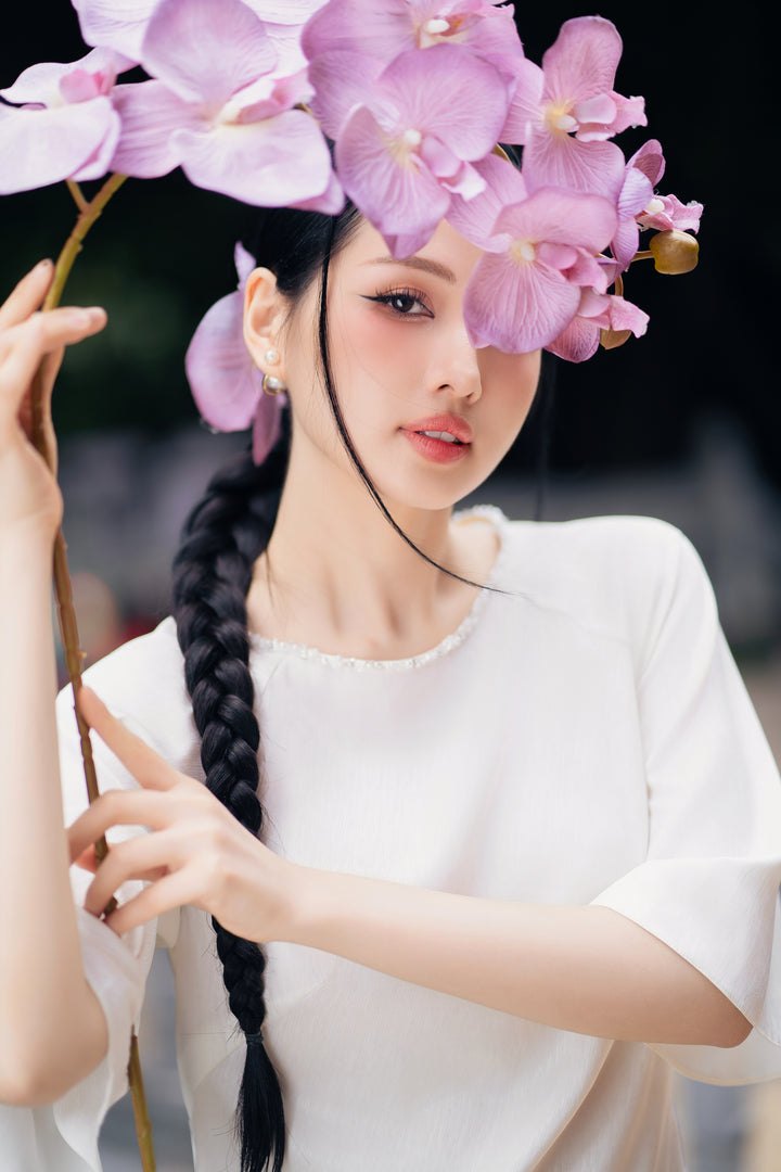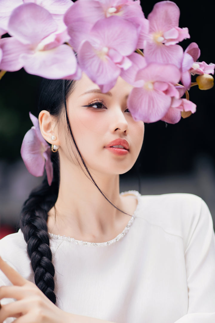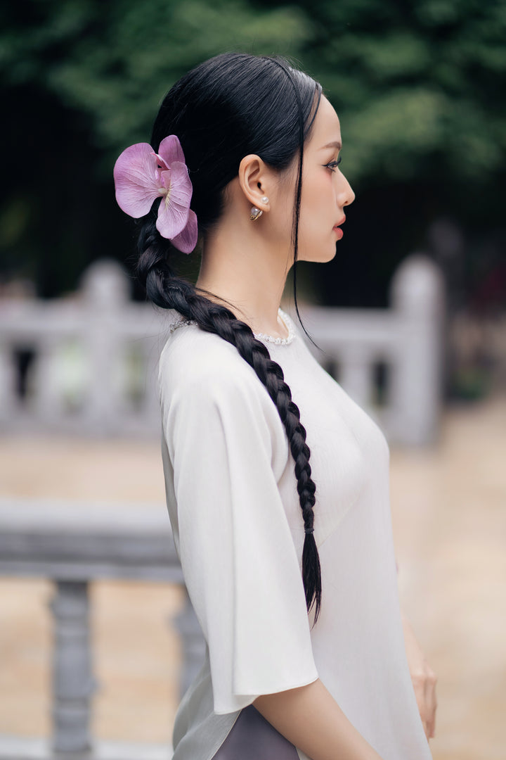Với sự kết hợp giữa áo dài tay lỡ đính kết dáng suông và quần áo dài trơn, bạn sẽ tỏa sáng trong dịp du xuân với sự thoải mái và thanh lịch. Trang điểm nhẹ nhàng và kiểu tóc tinh tế như buộc tóc đuôi ngựa hay tóc xoăn nhẹ để làm nổi bật vẻ đẹp tự tin.