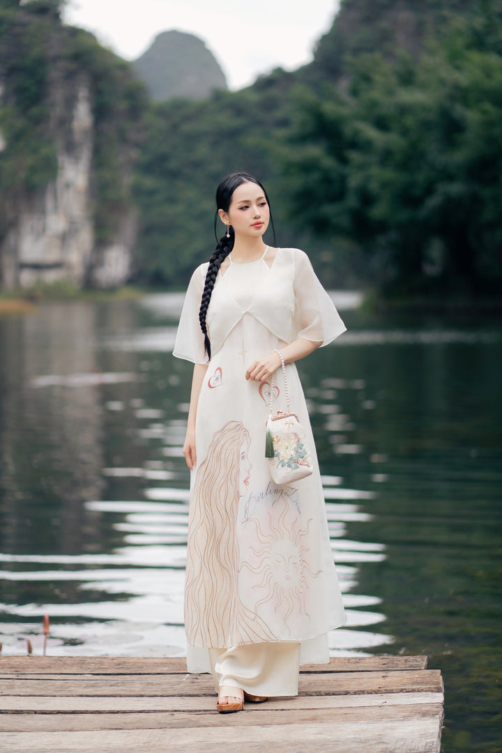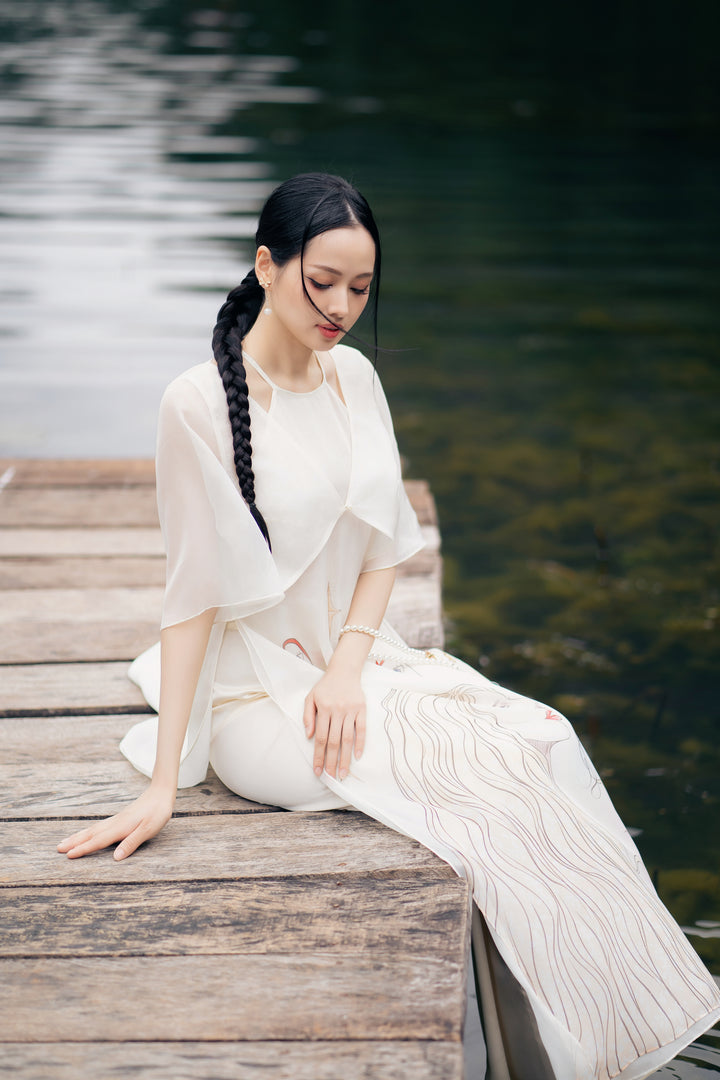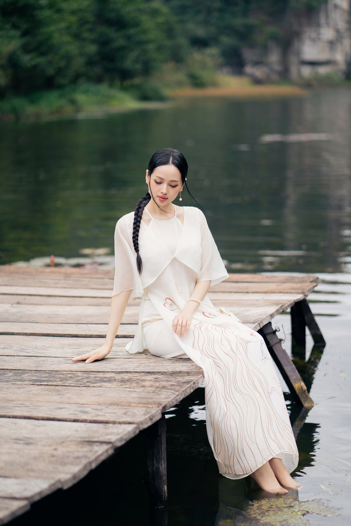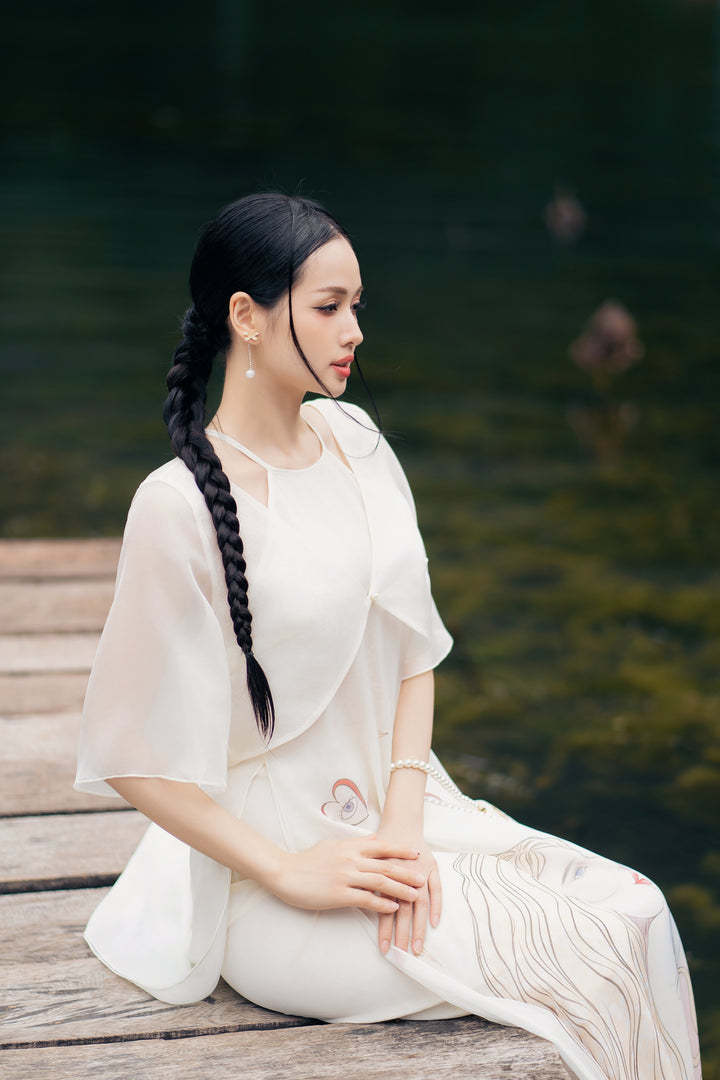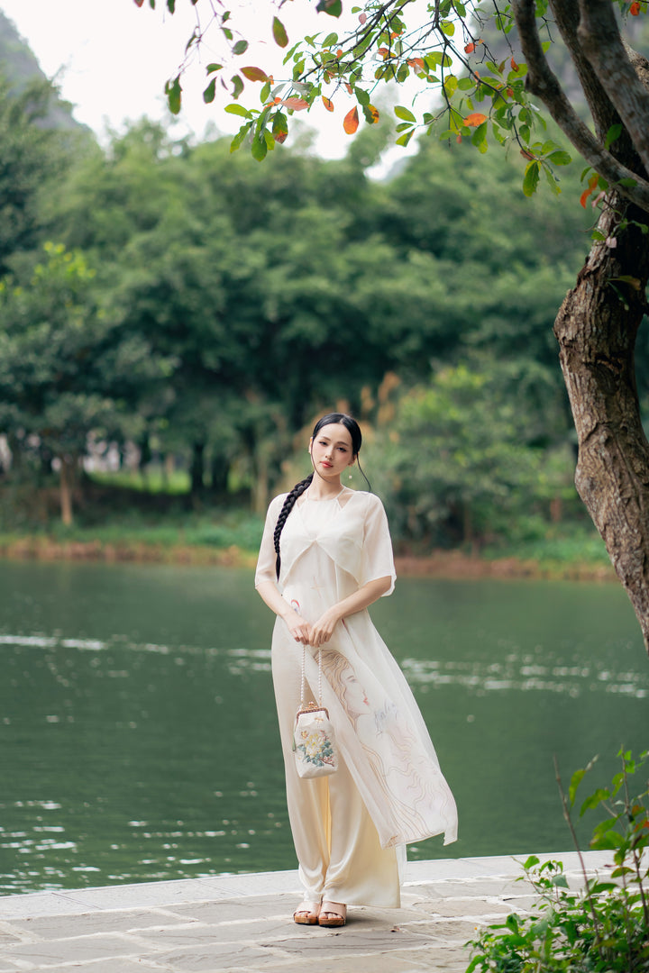 Áo dài Thiên Kiết - Áo Dài Cổ Yếm Khoác Áo Tay Lỡ Dáng Suông Họa Tiết & Quần Áo Dài Trơn
