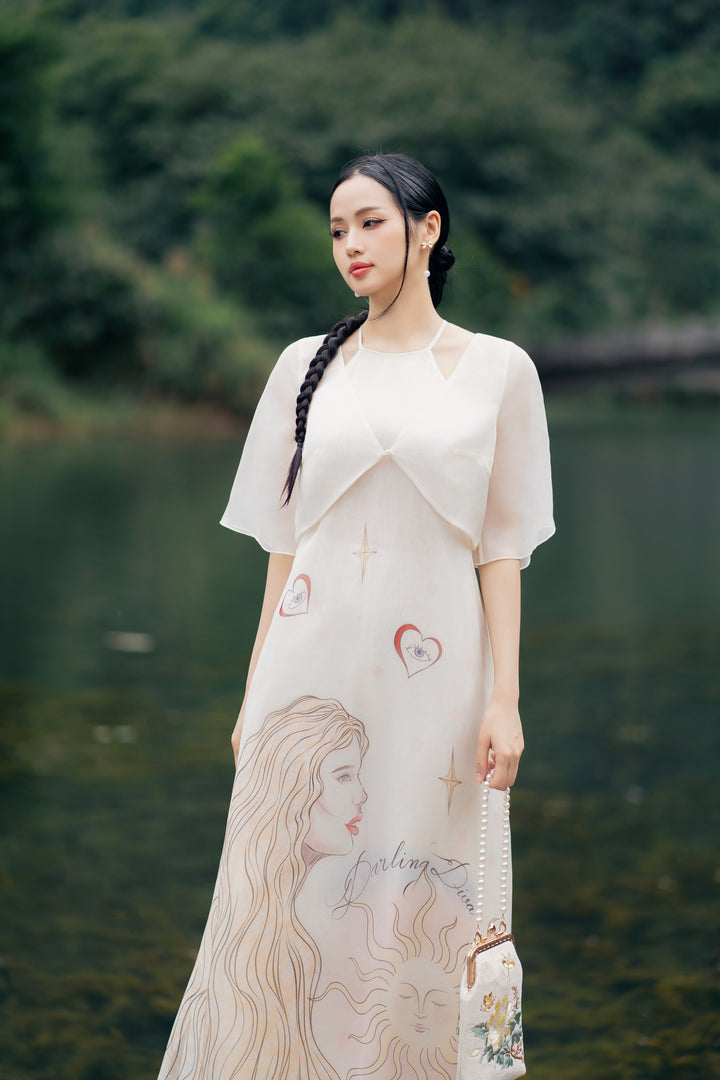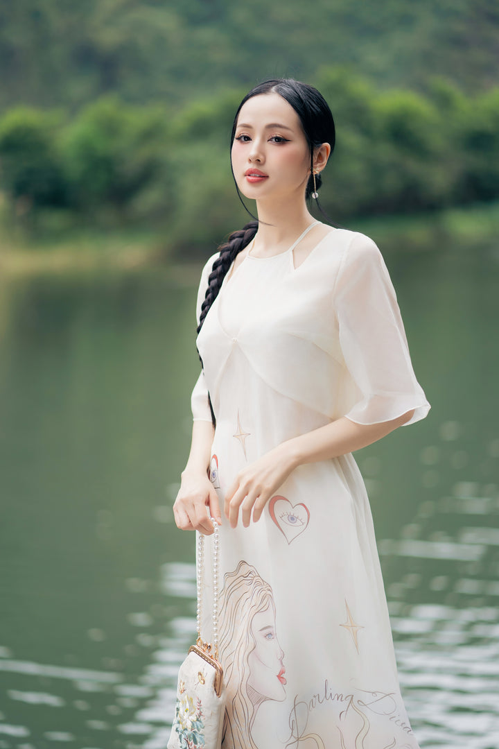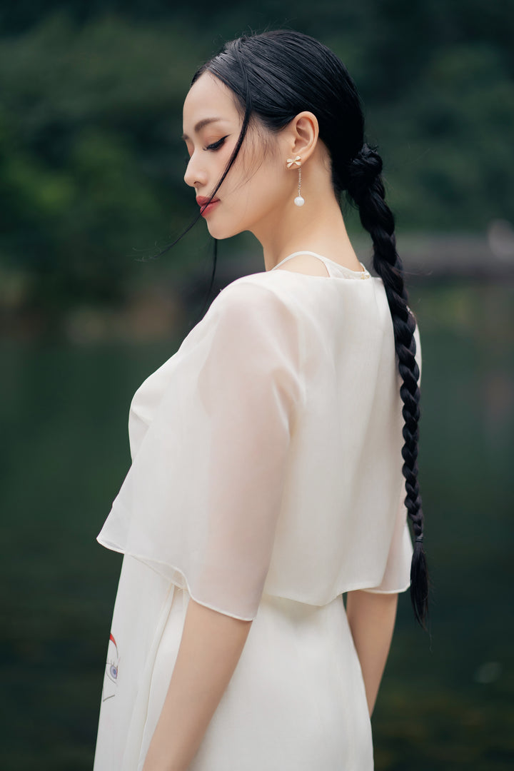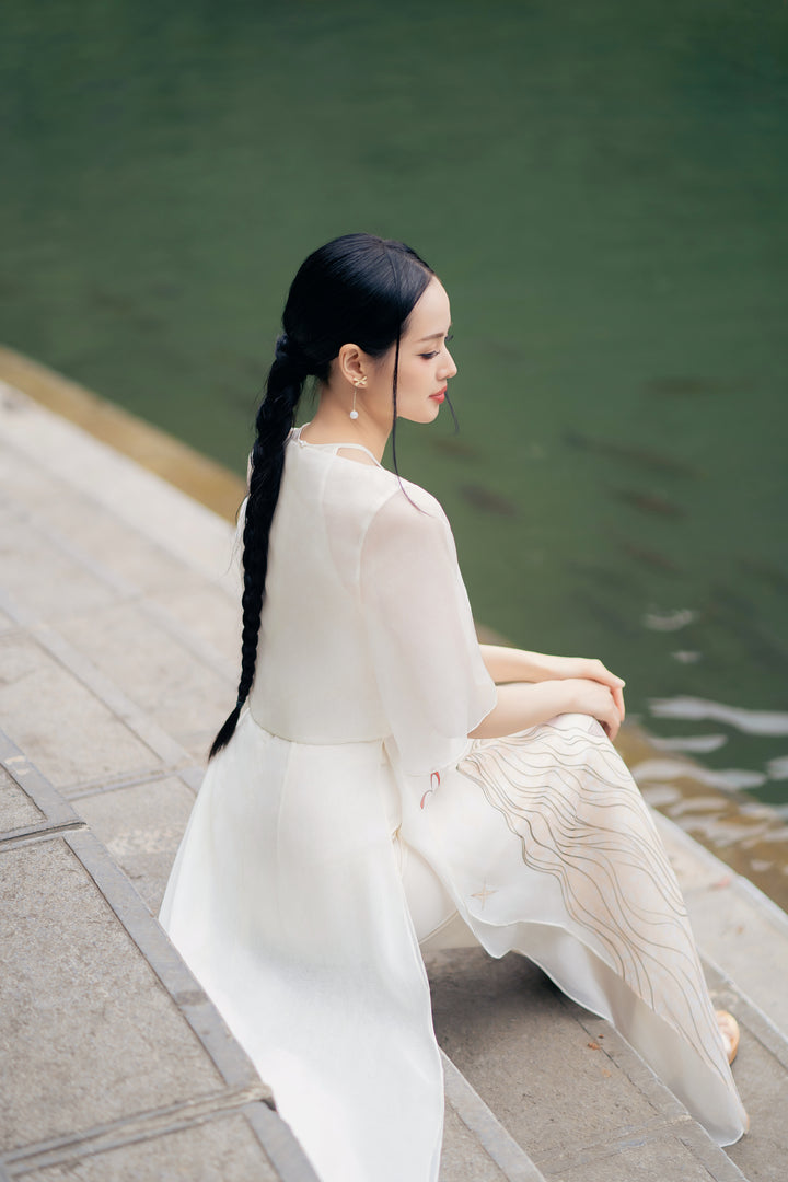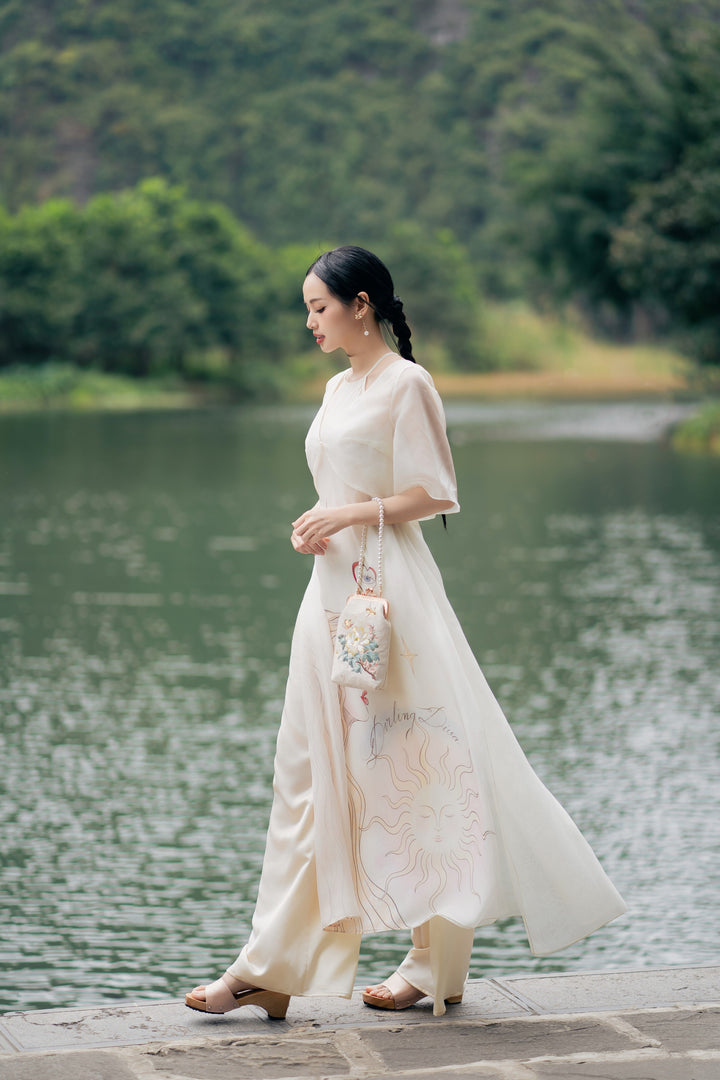 Áo dài Thiên Kiết - Áo Dài Cổ Yếm Khoác Áo Tay Lỡ Dáng Suông Họa Tiết & Quần Áo Dài Trơn