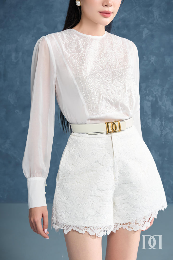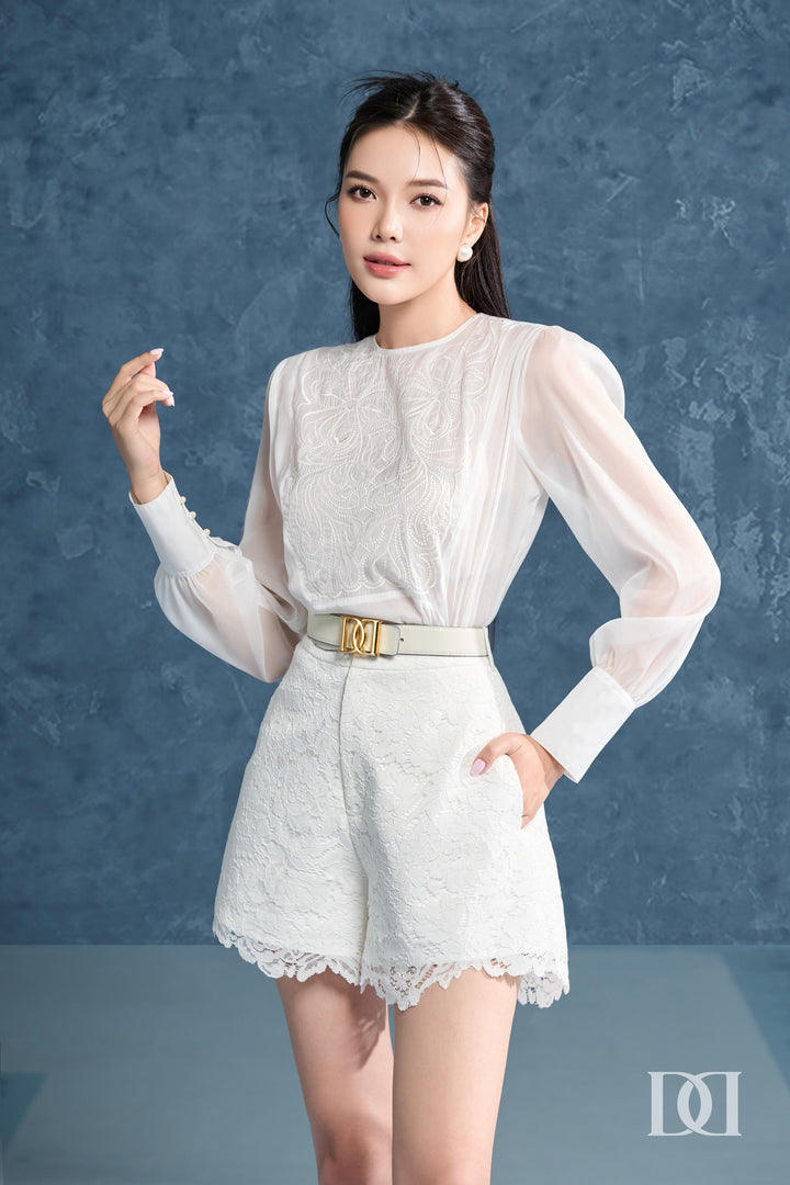 Curtis Set - Áo Thêu Họa Tiết Tay Dài & Quần Ngắn Ống Rộng