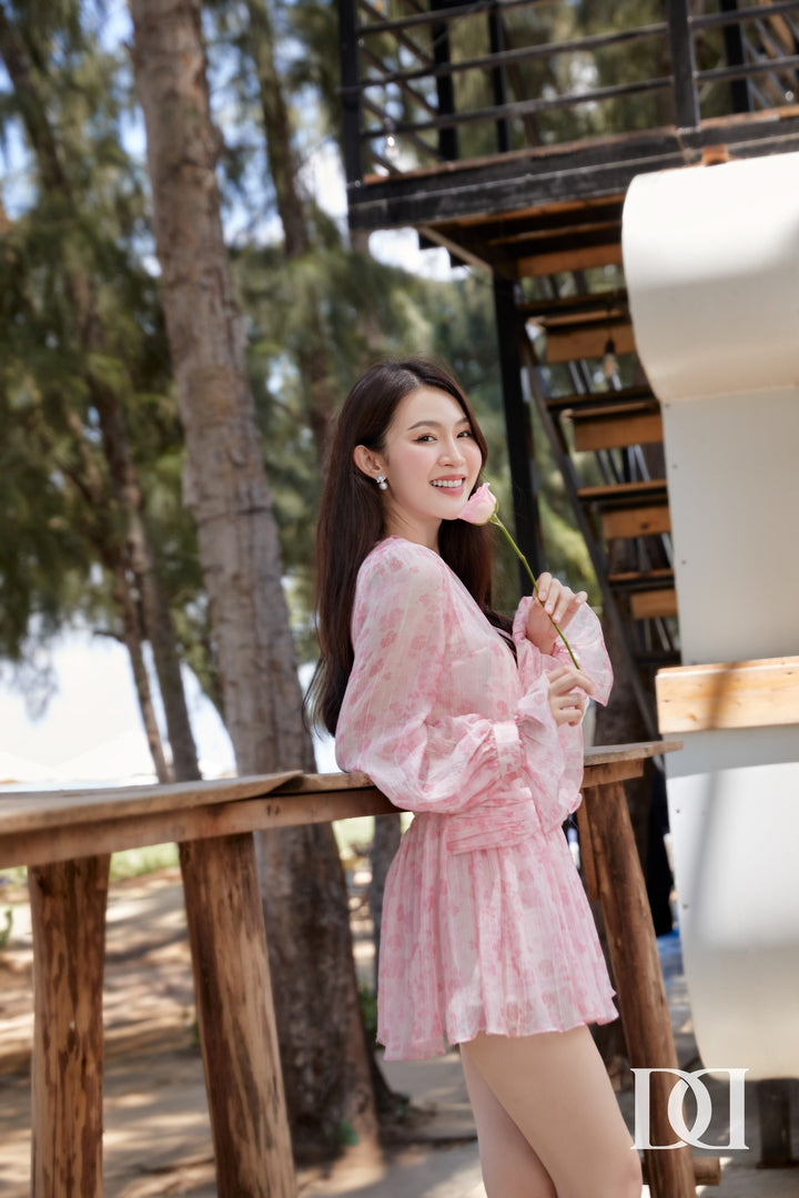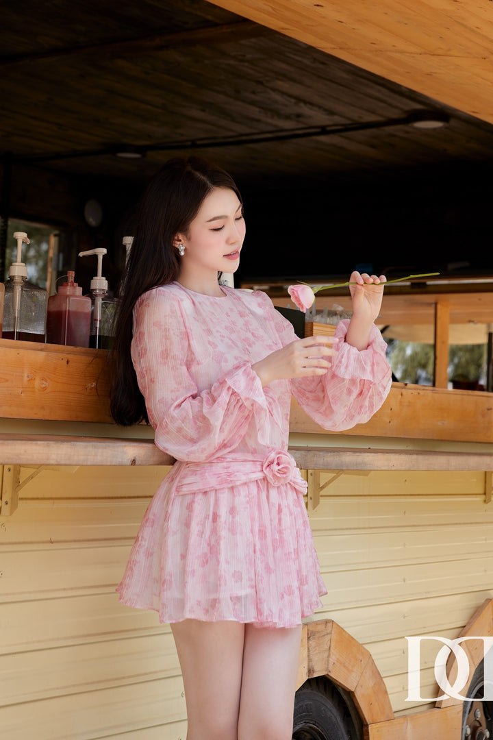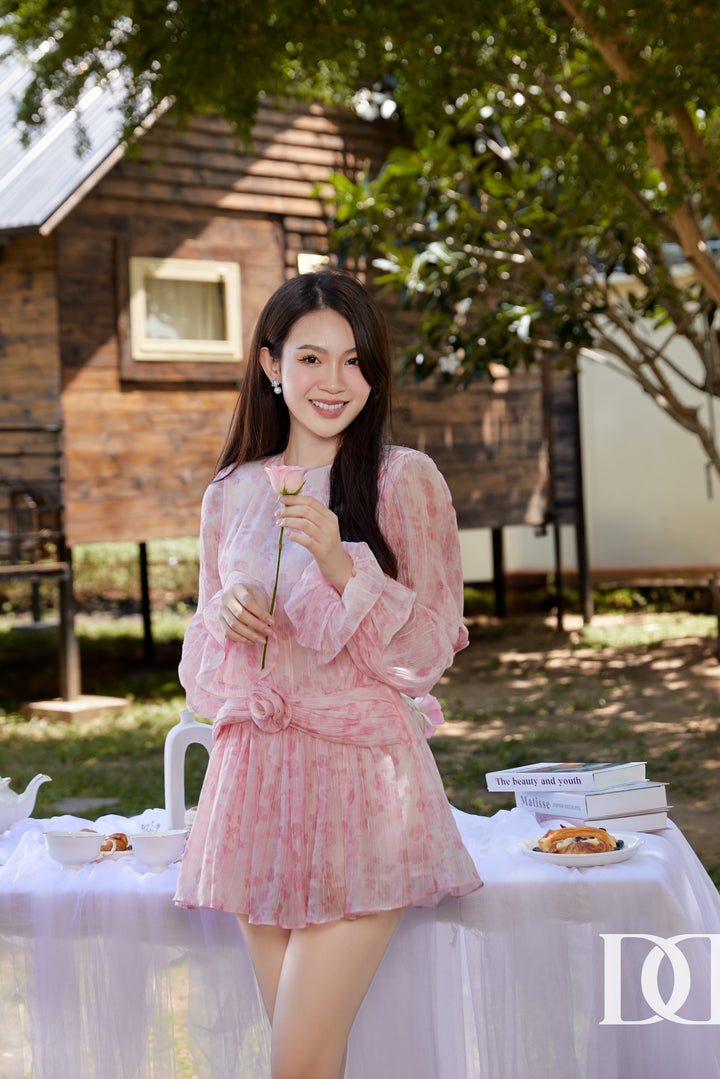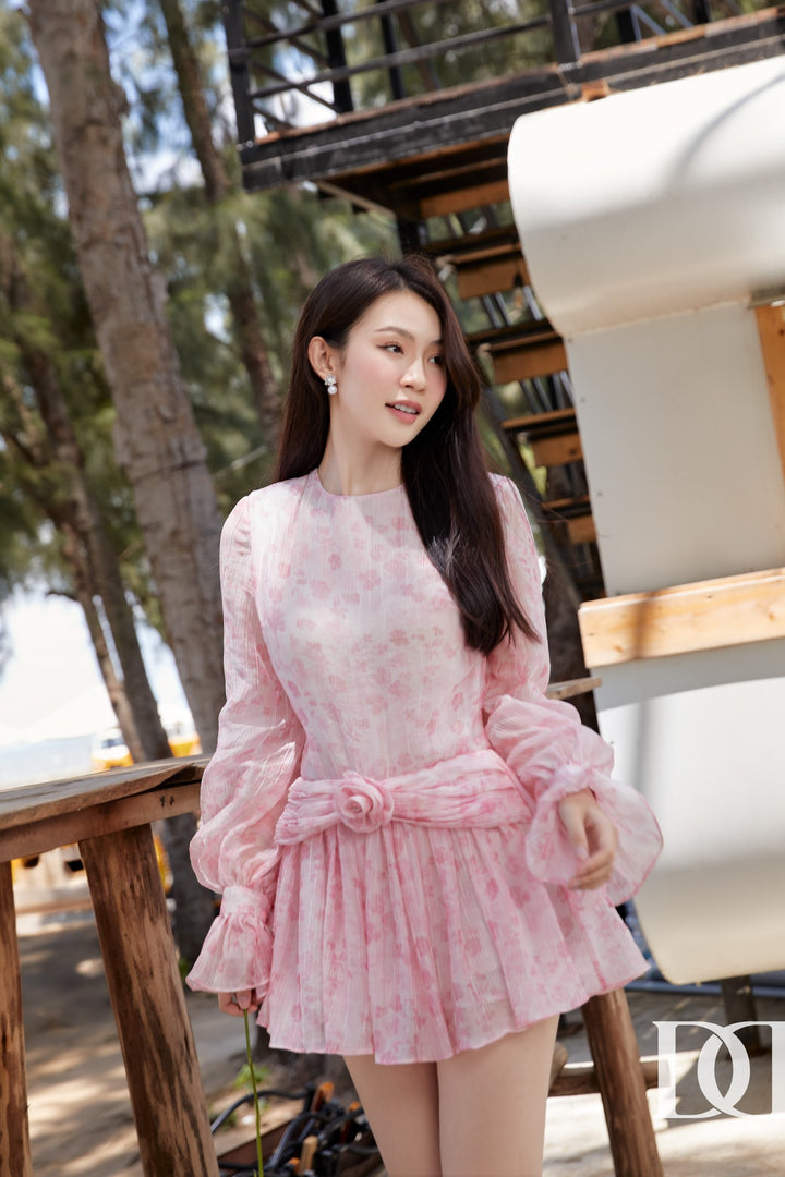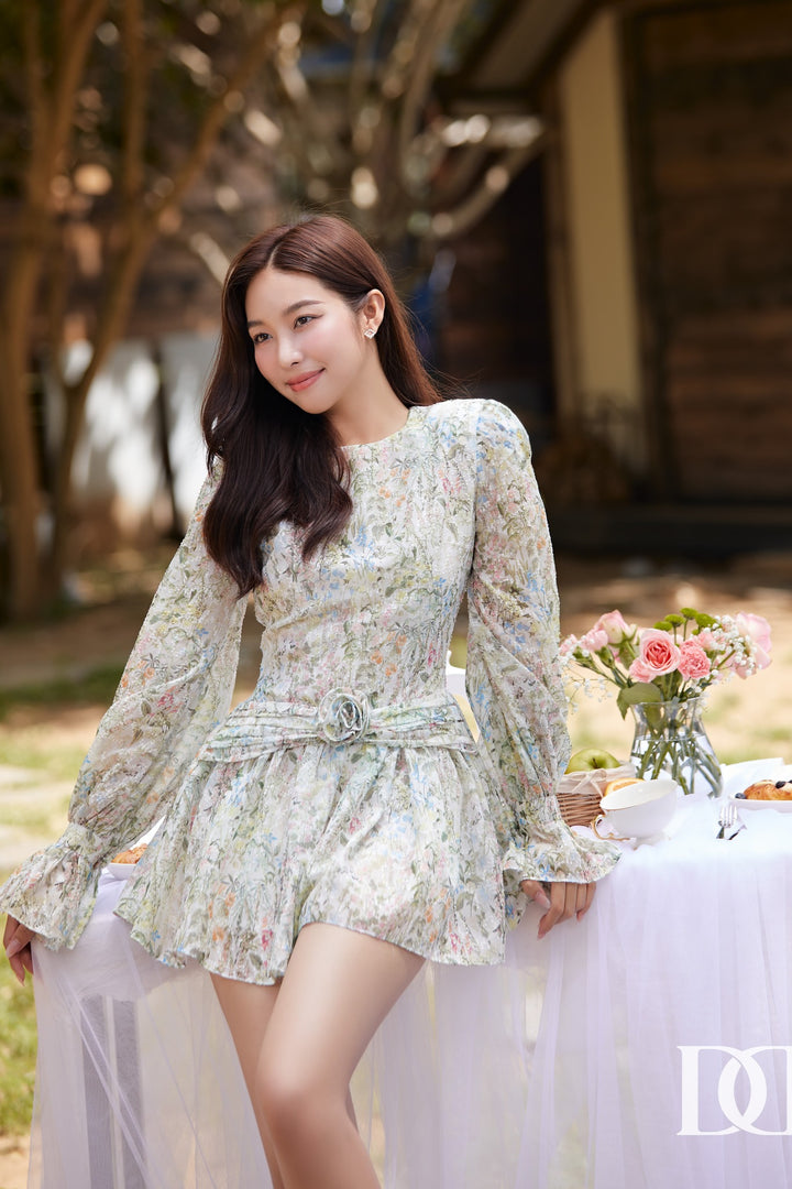 Bandy Dress - Đầm Mini Xòe Tay Phồng Đính Hoa Nổi