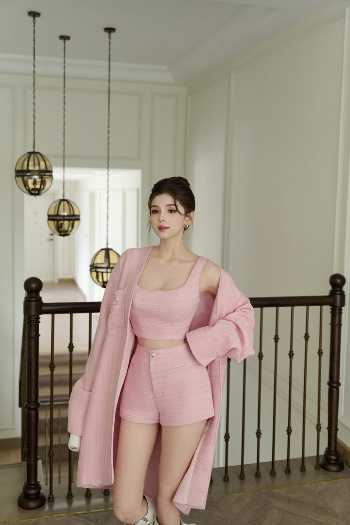 Berry Set - Áo Choàng Midi Suông & Áo Hai Dây Dáng Crop-top & Quần Ngắn Dáng Ôm