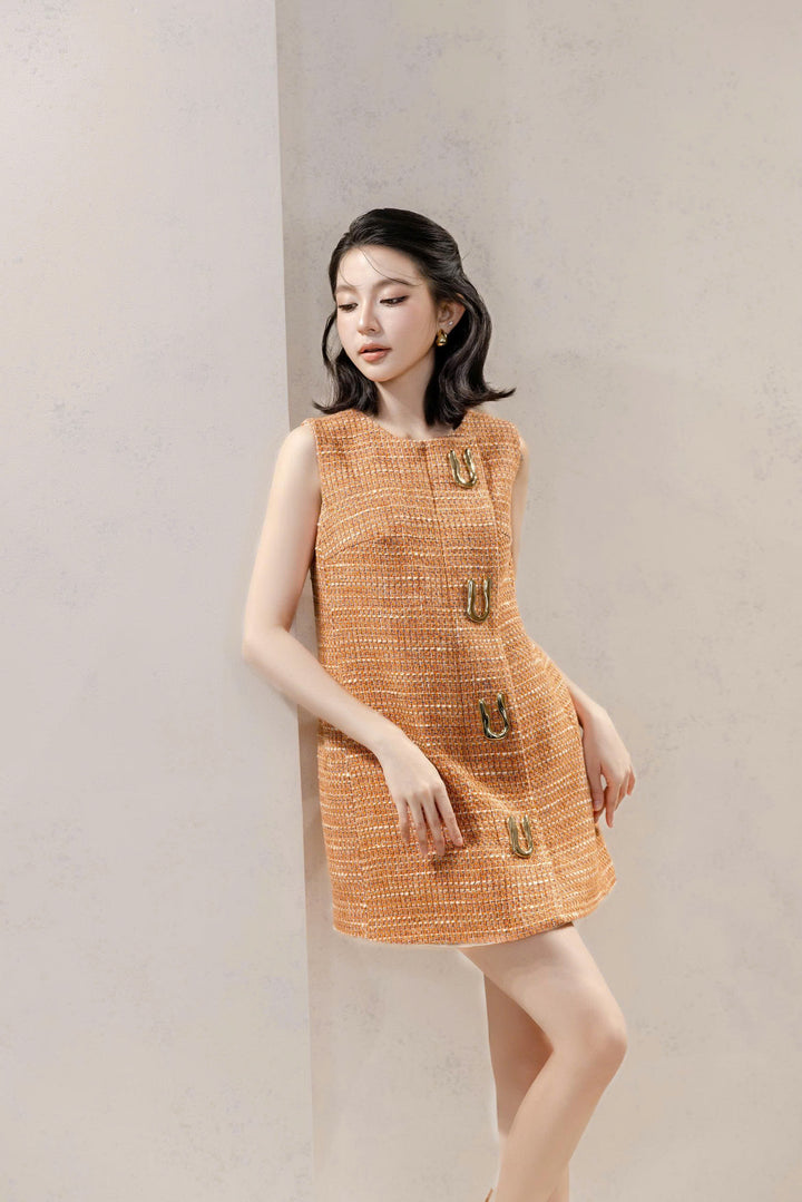 CAMERON DRESS - Đầm Tweed Dáng Suông Tỏa Sắc Cam Thanh Lịch