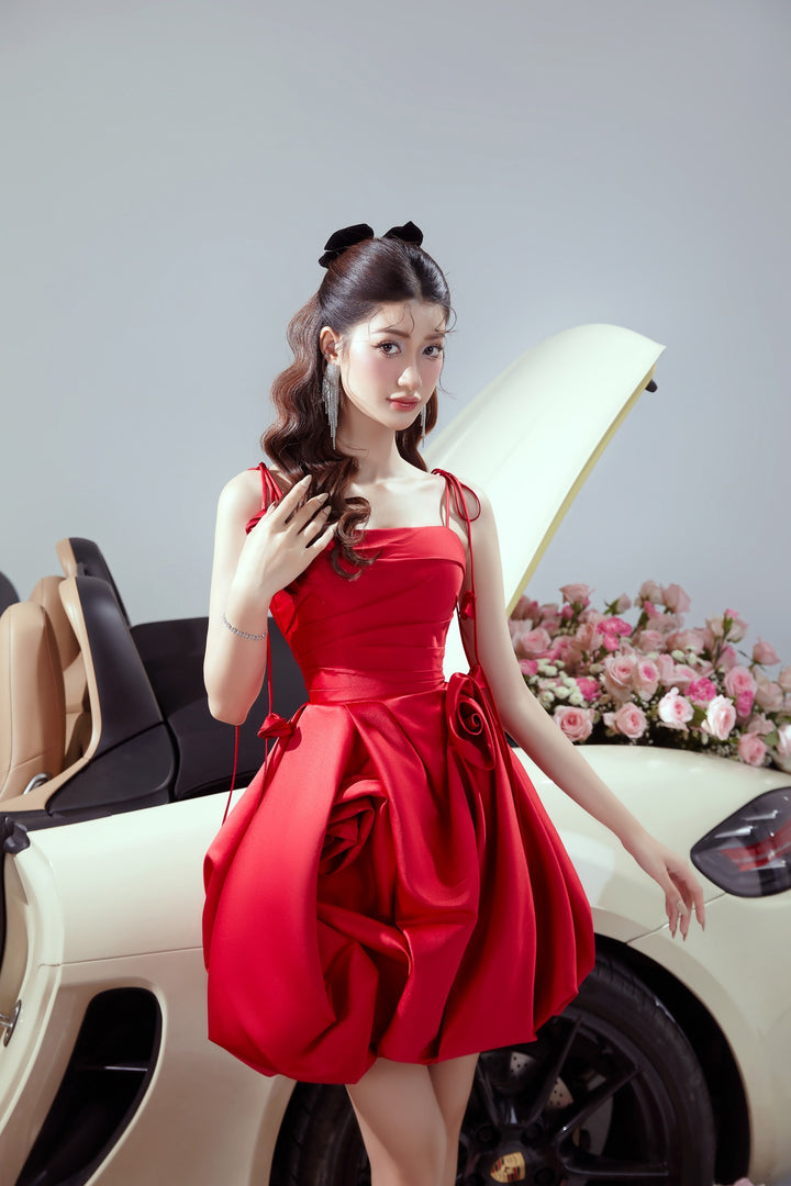 Đầm Hai Dây Dáng Phồng Hoa Nổi Đầy Lôi Cuốn Nomia Dress