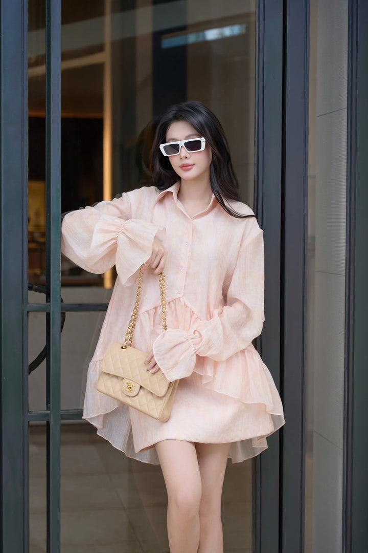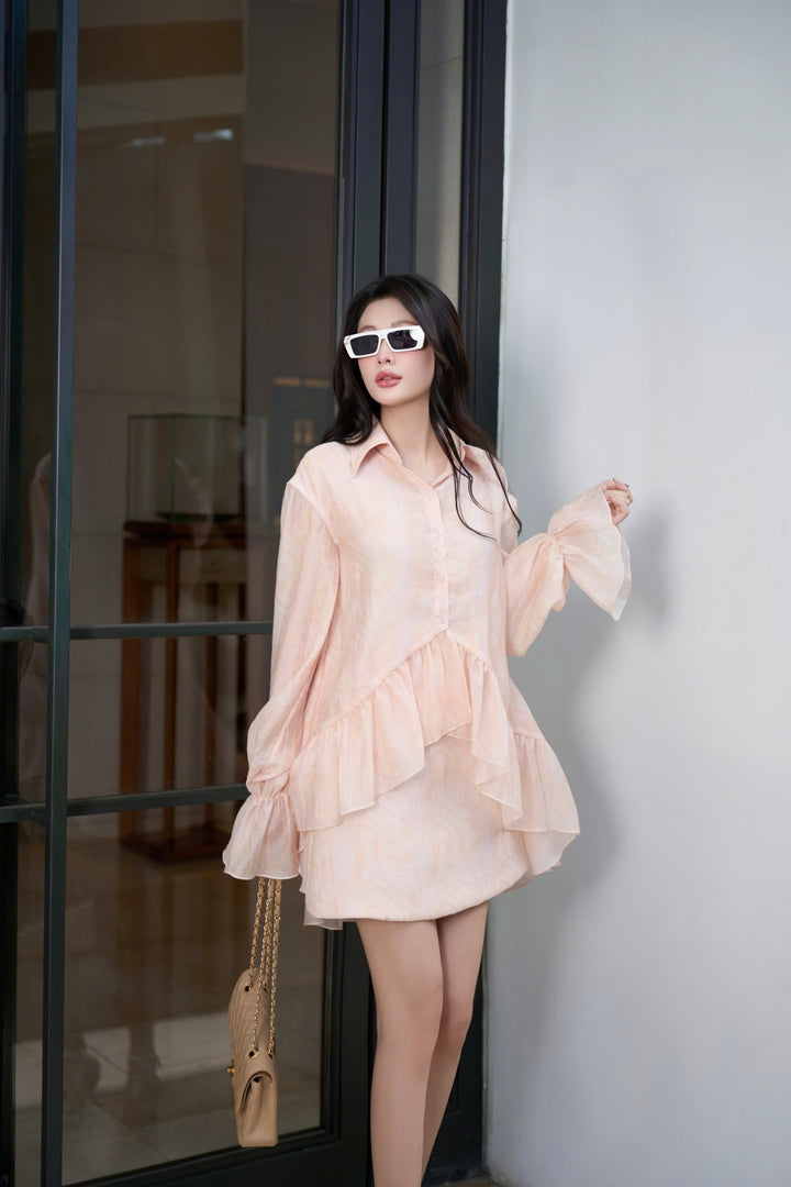 Là bản hoà ca ngọt ngào giữa gam hồng cam dịu nhẹ và phom dáng thanh thoát, Dore Set mang đến vẻ đẹp nữ tính đầy cuốn hút cho những ngày hạ. Thiết kế áo sơ mi cách điệu với đường xếp bèo mềm mại tạo điểm nhấn tinh tế, tay áo loe nhẹ và cổ áo cổ điển gợi lên hình ảnh quý cô hiện đại – dịu dàng nhưng không kém phần phong cách. Dore Set là lựa chọn lý tưởng cho những buổi dạo phố nhẹ nhàng, những cuộc hẹn đầy cảm hứng hay những ngày cần một chút dịu dàng cho tâm hồn.