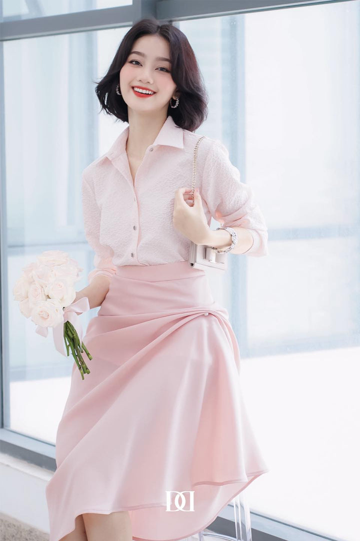 Fae Top (Hồng) - Áo Sơmi Nút Nổi Tay Phồng