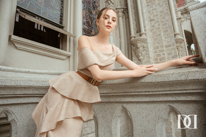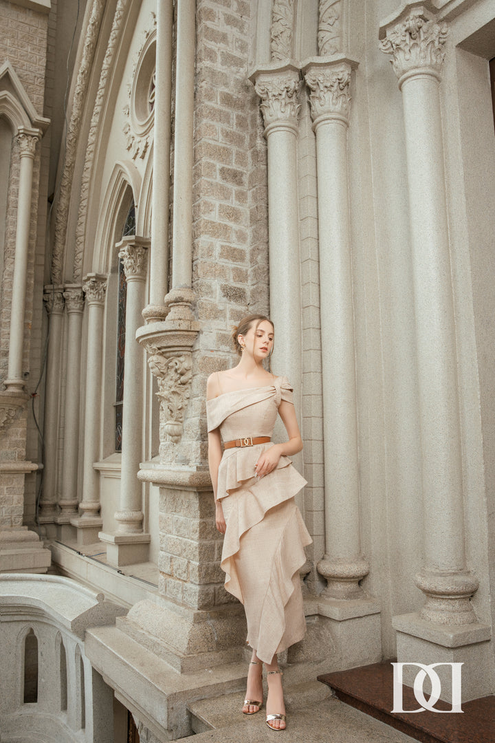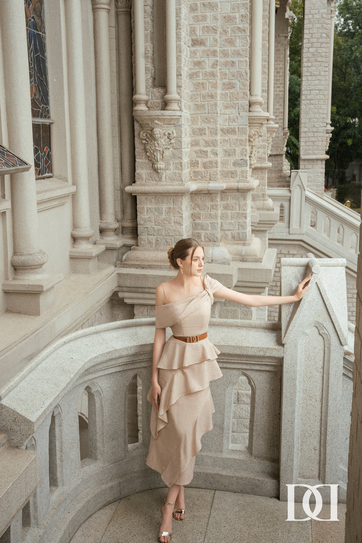 Gremi Dress - Đầm Maxi Lệch Vai Xếp Lớp Bất Cân Xứng