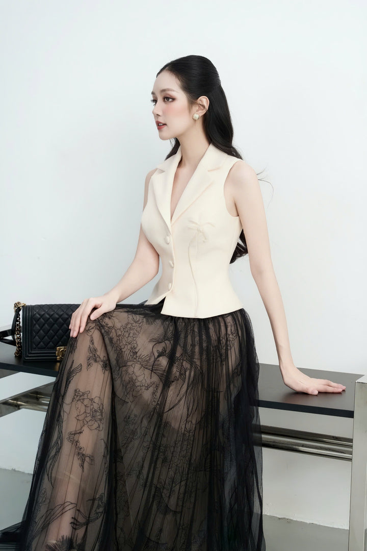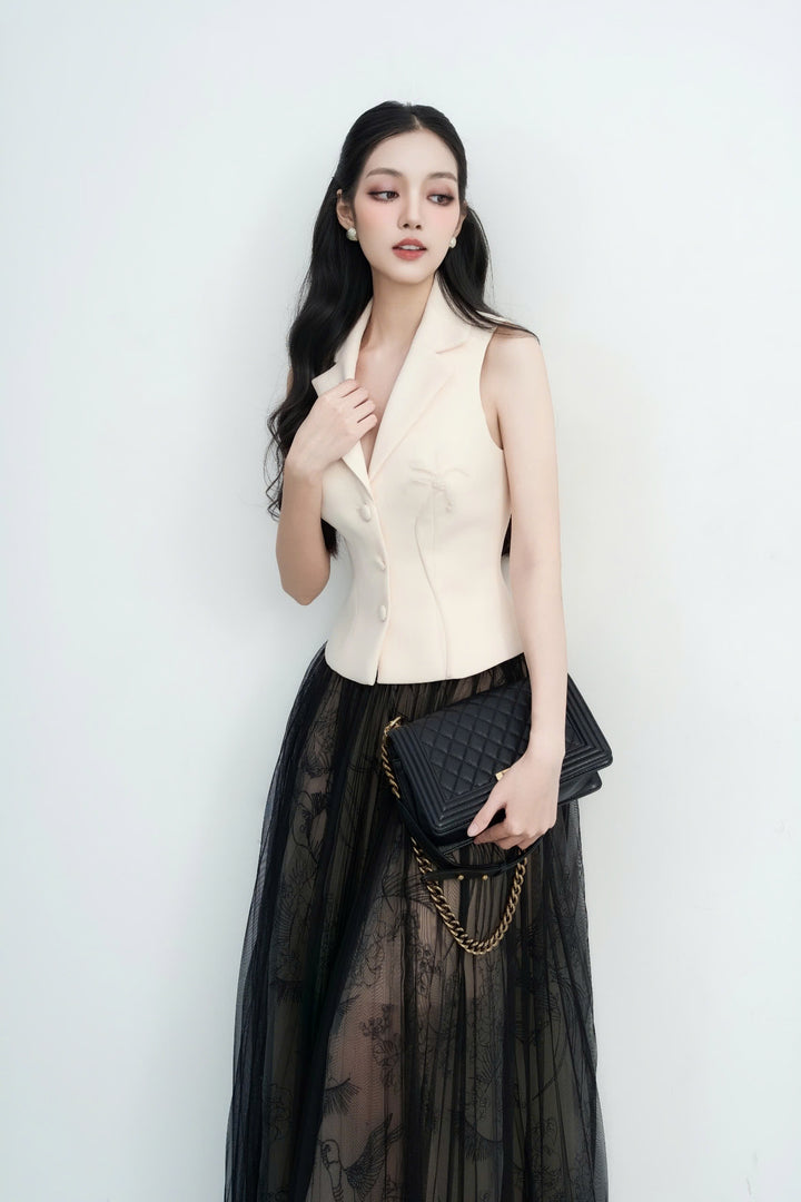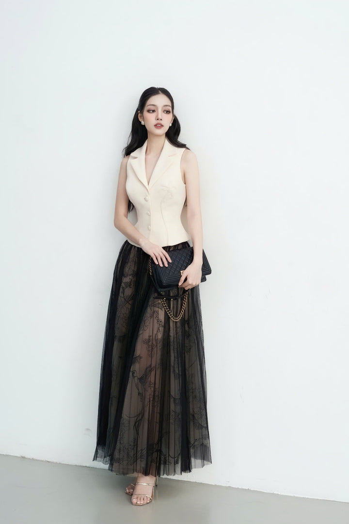 Holly Top & Quinn Skirt là bộ đôi biểu tượng cho nét đẹp trang nhã, hiện đại mà bất kỳ quý cô nào cũng nên sở hữu. Chiếc áo Holly với phom dáng ôm nhẹ, cổ vest đứng chuẩn chỉnh, mang đến diện mạo chỉn chu. Đi cùng chân váy Quinn dáng dài xuyên thấu in họa tiết tạo nên sự cân bằng hoàn hảo giữa nét quyền lực và sự mềm mại. Set trang phục này sẽ là lựa chọn lý tưởng cho các buổi gặp gỡ quan trọng để nàng ghi dấu bằng vẻ đẹp thanh lịch pha chút cổ điển hiện đại.