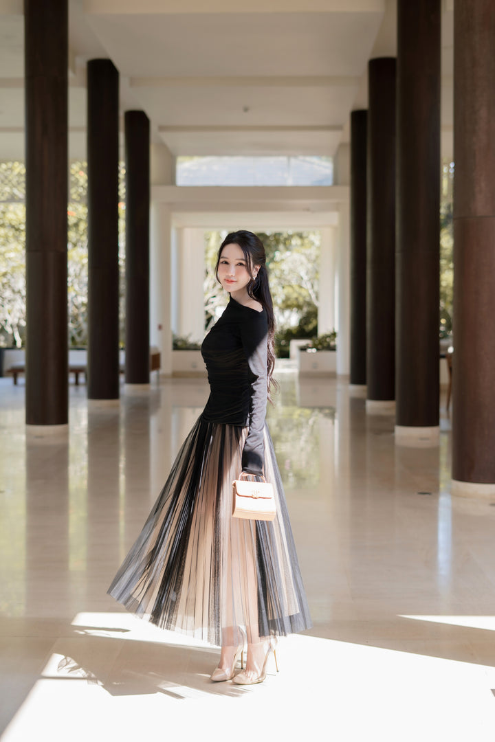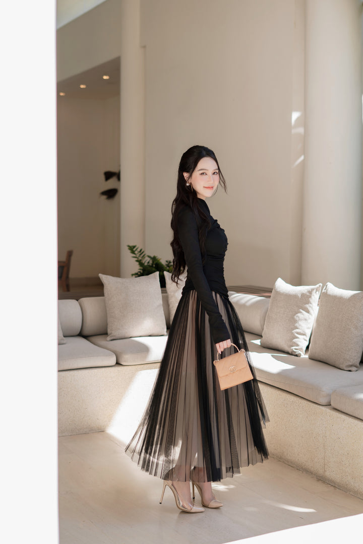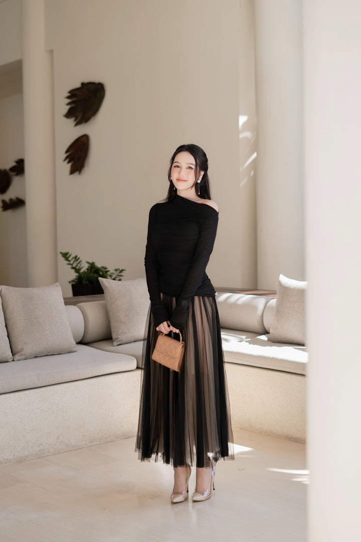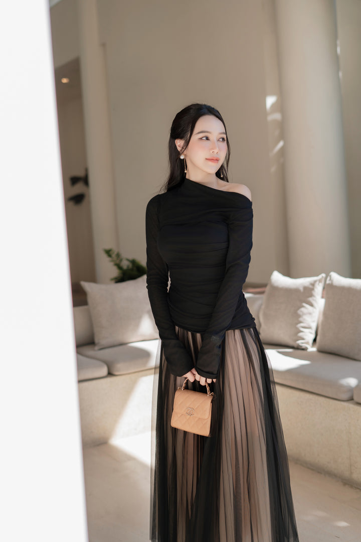 Ikira Top - Áo Ôm Tay Dài Lệch Vai & Rory Skirt - Chân Váy Midi Xòe sẽ là bộ trang phục hòa quyện giữa sự gợi cảm, phá cách của áo ôm tay dài lệch vai và vẻ nữ tính, thanh lịch của chân váy midi xòe. Bộ trang phục này có thể phù hợp cho nhiều dịp khác nhau, từ các buổi tiệc nhẹ nhàng, dạo phố, đến các sự kiện tối. Cách kết hợp và phối đồ cùng phụ kiện sẽ tạo nên phong cách riêng và cá nhân cho người mặc.
