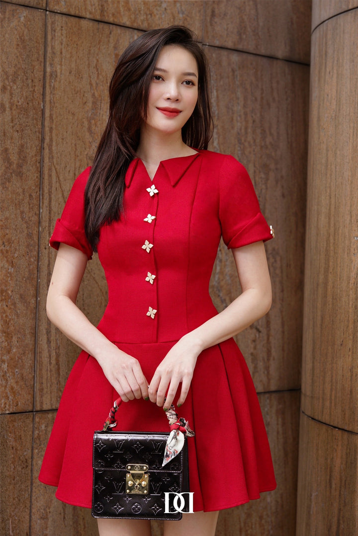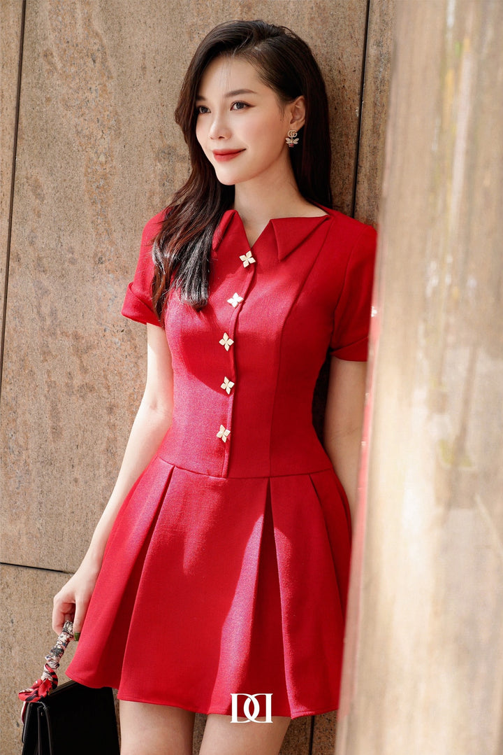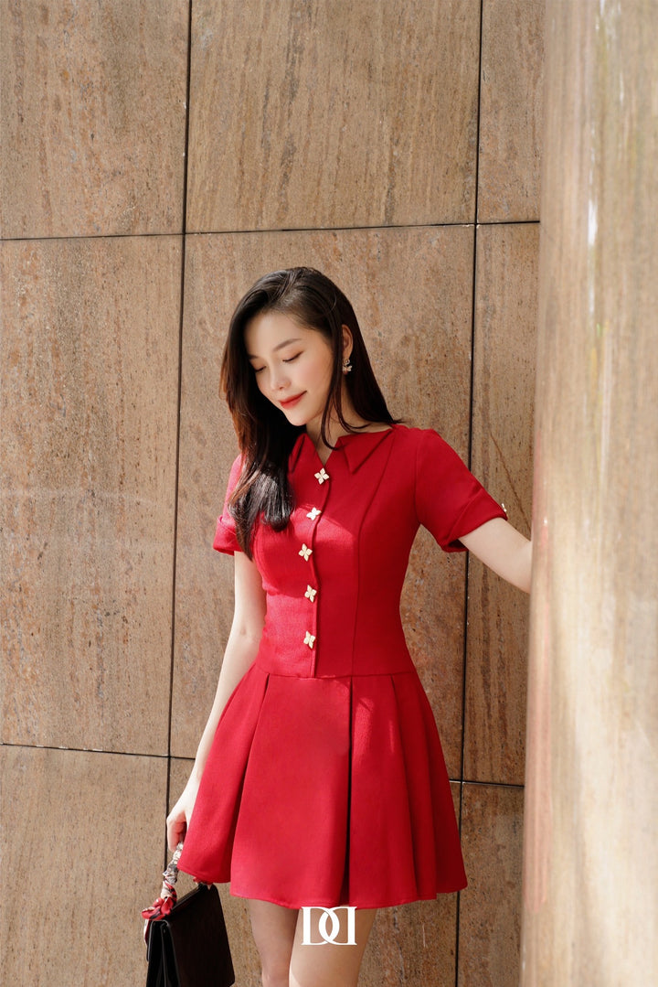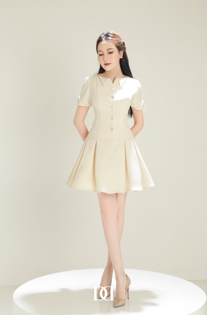 Jiny Dress - Đầm Mini Cổ Thuyền Đính Nút Nổi