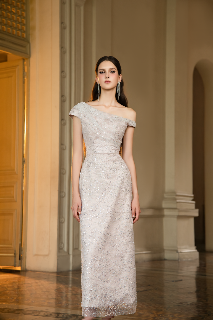 JONATHAN DRESS - Đầm Dạ Hội Ánh Kim Lệch Vai Sang Trọng