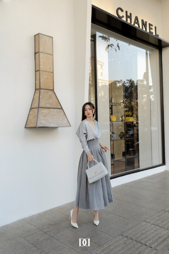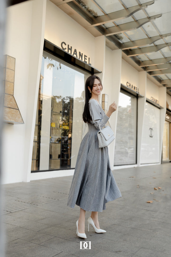 Joy long sleeve V-neck dress is a classic and stylish option that can be worn year-round for a variety of occasions.