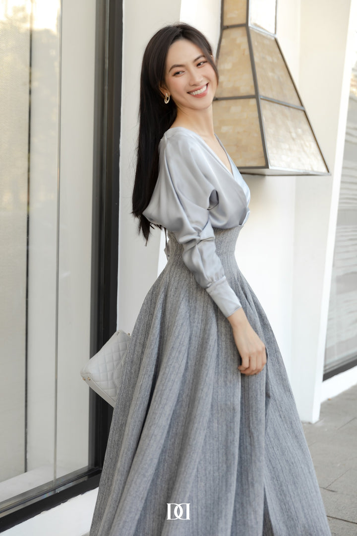 Joy Long Fitter Sleeves V-Neck Dress