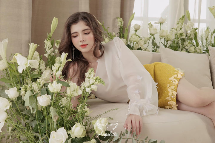 Cách giặt và bảo quản: Giặt tay nhẹ nhàng bằng nước lạnh. Ủi bằng bàn là hơi số nhỏ, phơi giũ không nhăn.