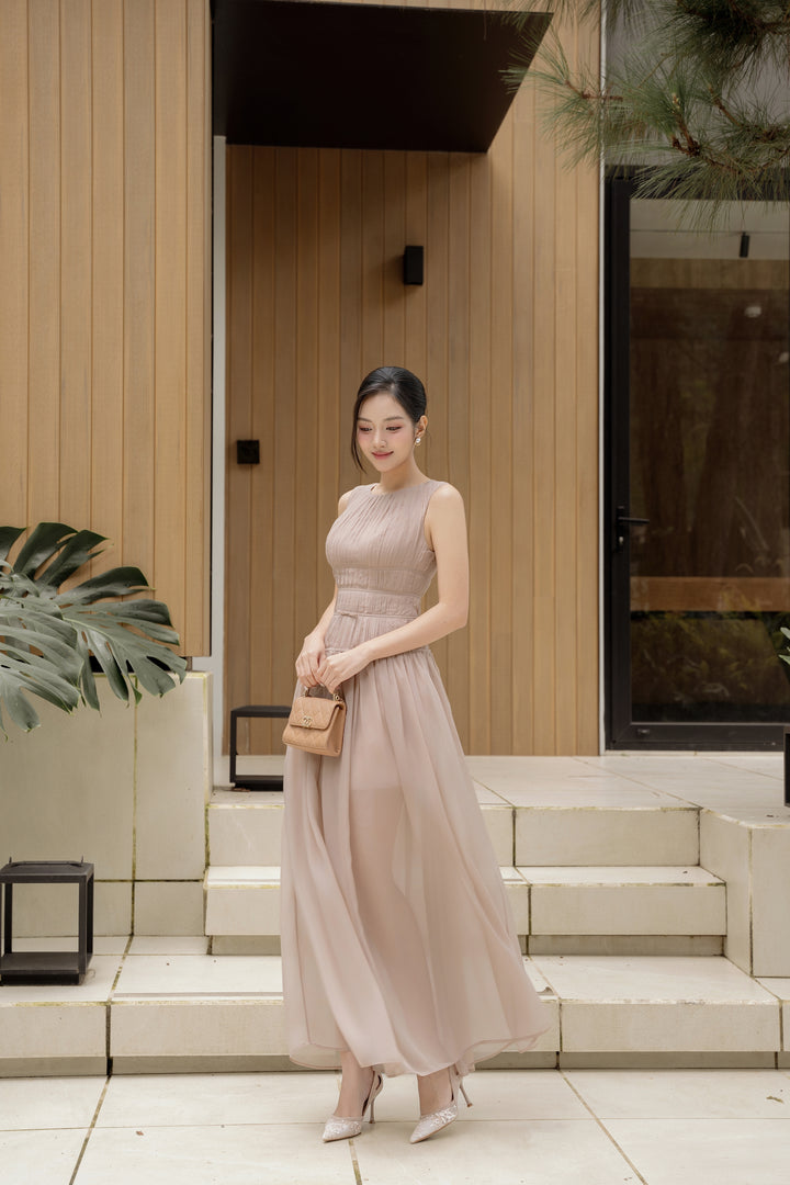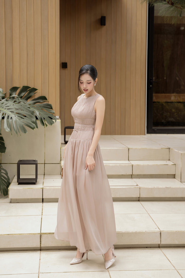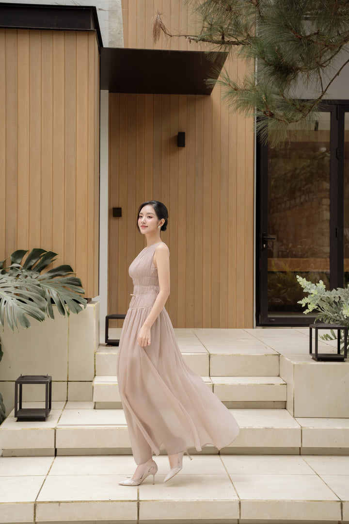 LAVIAN DRESS - Đầm Dài Xòe Thướt Tha Gam Nâu Quý Phái
