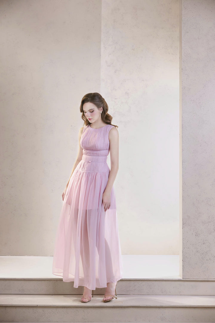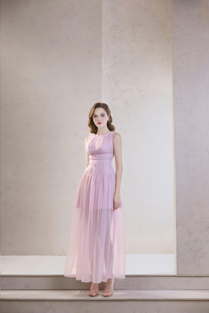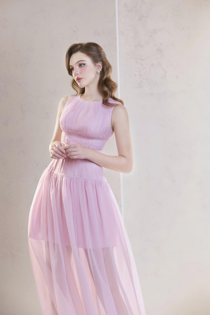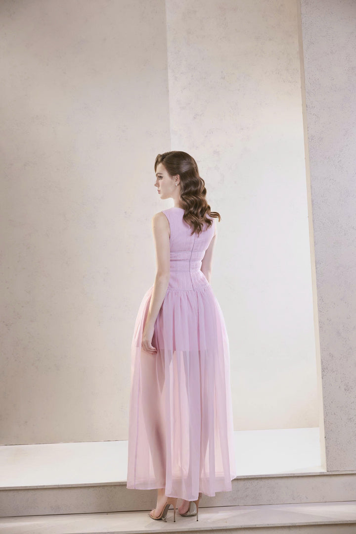Phần chân váy xoè thướt tha tạo nên chuyển động uyển chuyển tựa làn sóng, nhẹ nhàng nhưng đầy cuốn hút. Chất liệu cao cấp cùng đường cắt may tinh xảo giúp phom dáng giữ vững vẻ kiêu kỳ, biến chiếc đầm trở thành lựa chọn hoàn hảo cho những buổi tiệc tối, sự kiện trang trọng hay bất kỳ khoảnh khắc nào nàng muốn toả sáng với phong thái thanh lịch và tự tin.