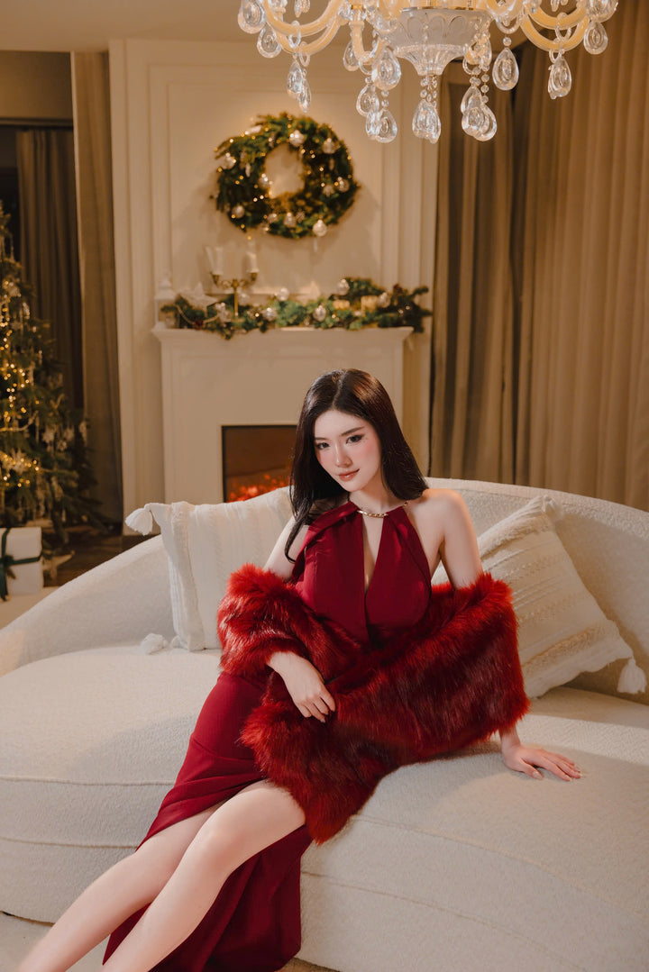 Xuất hiện với vẻ ngoài kiêu sa, Rayeon Lee chọn cho mình Luna Dress với gam màu đỏ rực rỡ, tạo nên diện mạo lôi cuốn cho mùa Giáng sinh.