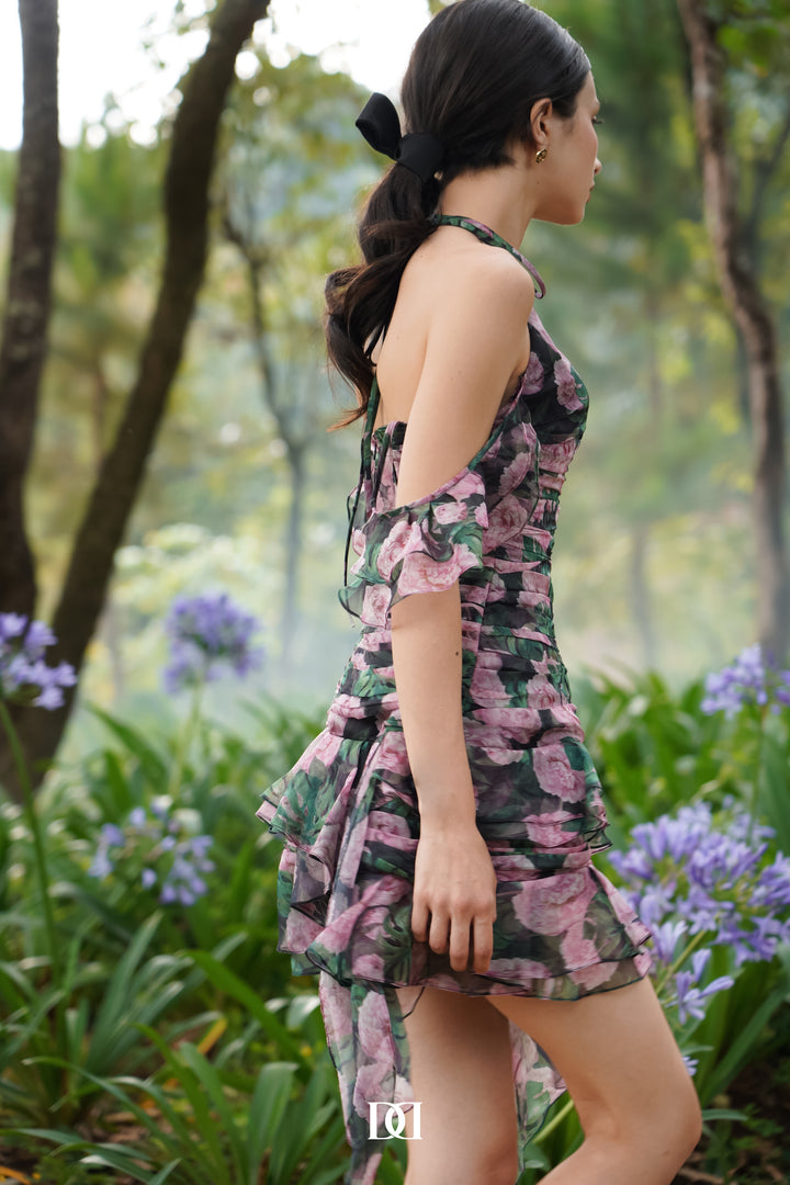 Lux Dress - Đầm mini voan hoa cổ dây tập hợp