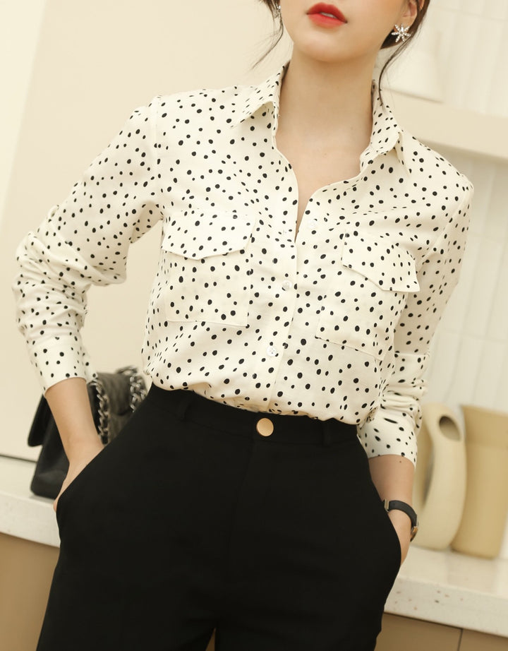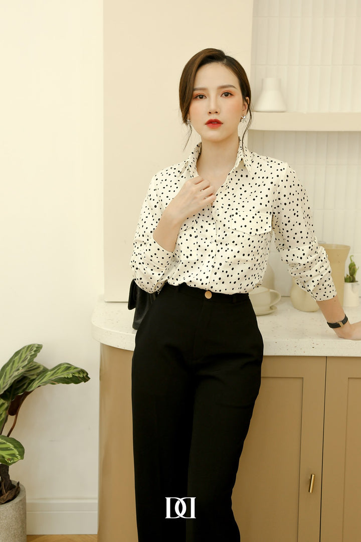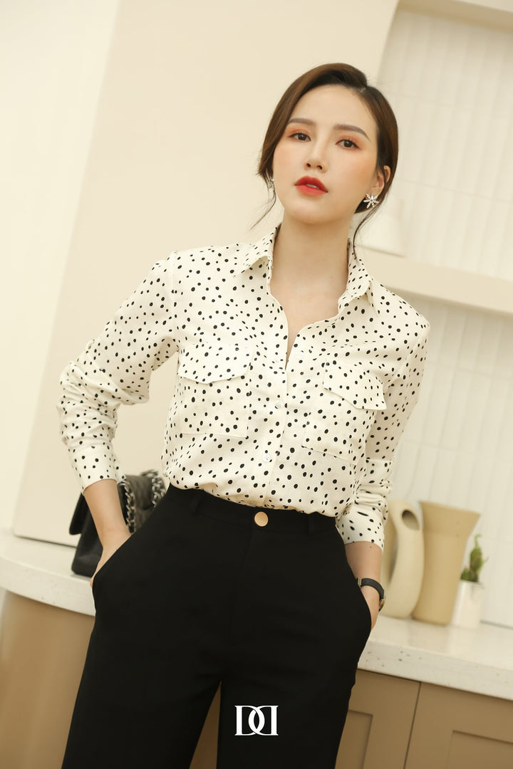 Min Top - Áo Sơmi Chấm Bi Túi Trước
