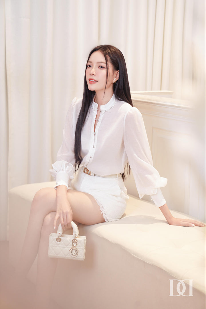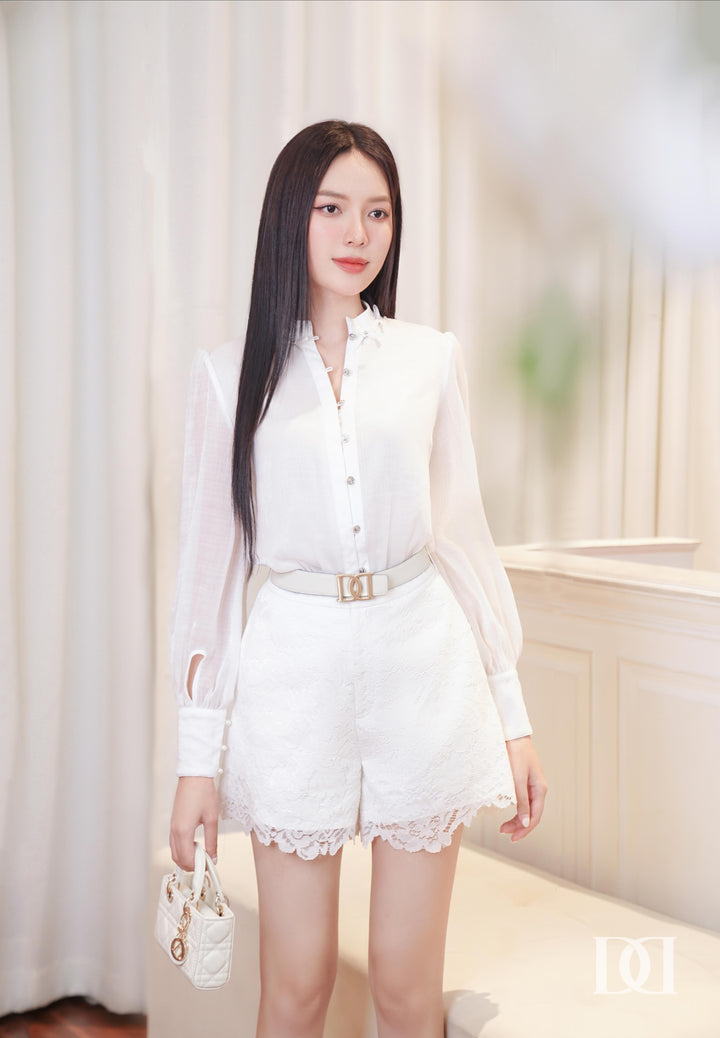 Áo sơ mi cổ trụ đính nơ nổi Moen Top