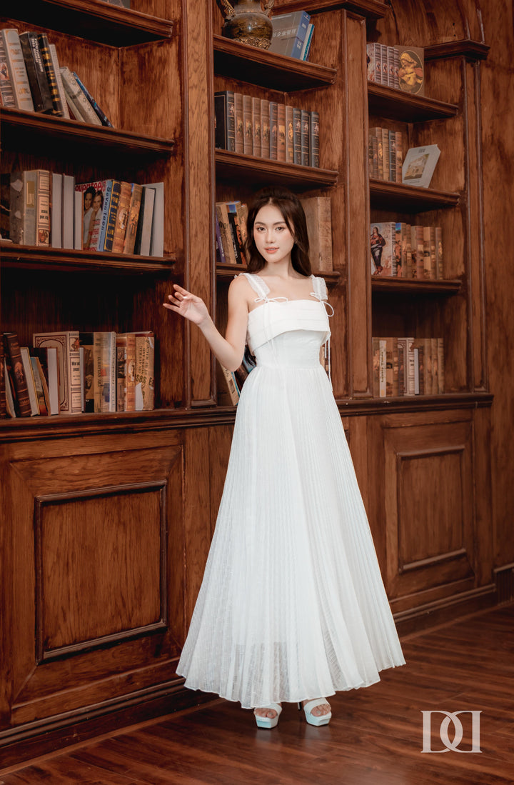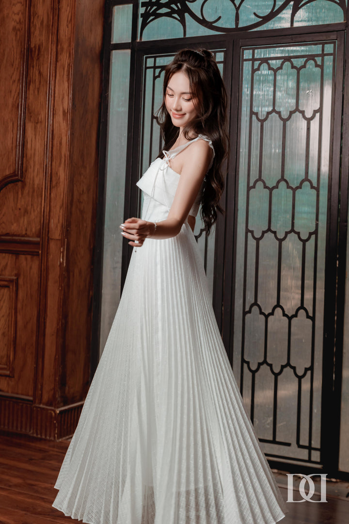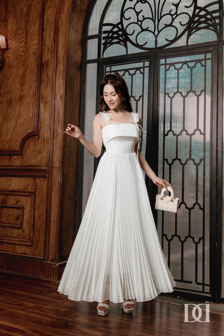 Morela Dress - Đầm hai dây midi xoè xếp ly