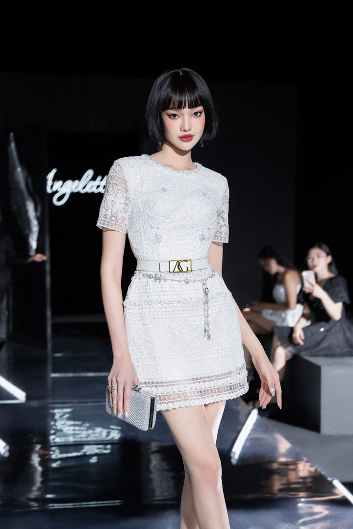 Salim Dress - Đầm Ren Mini Cổ Tròn Tay Ngắn Đính Kết Lấp Lánh