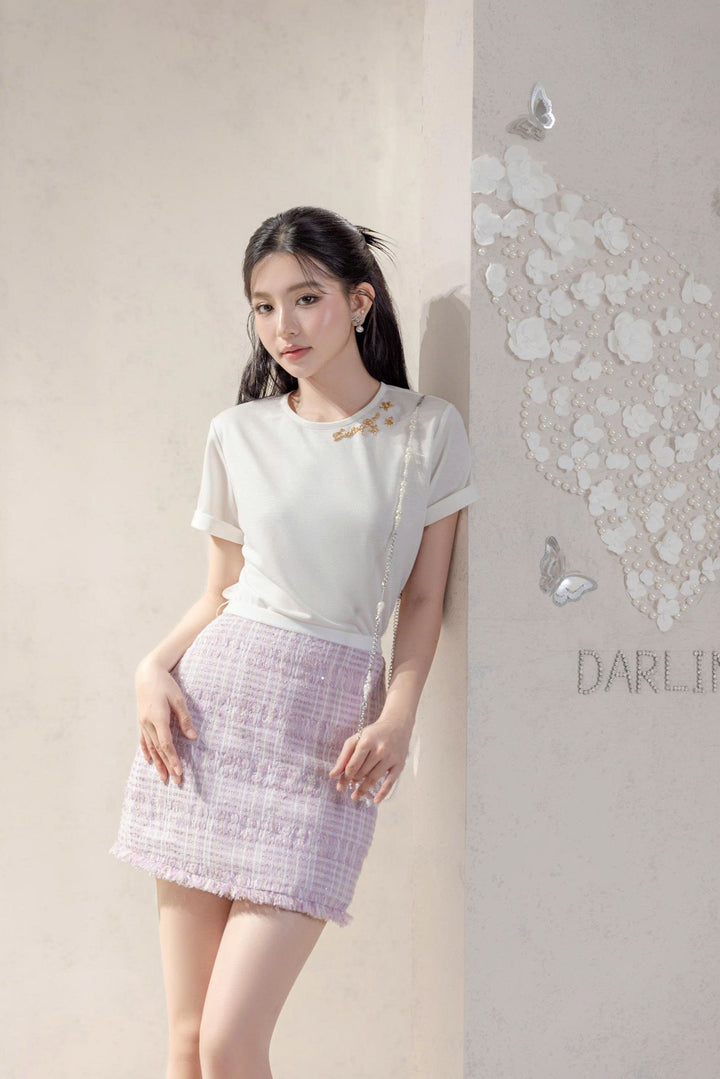 Chất liệu tweed mềm, có độ ánh nhẹ, tạo cảm giác sang trọng nhưng vẫn trẻ trung. Đây là lựa chọn hoàn hảo cho những quý cô yêu thích phong cách thanh lịch và tinh tế.