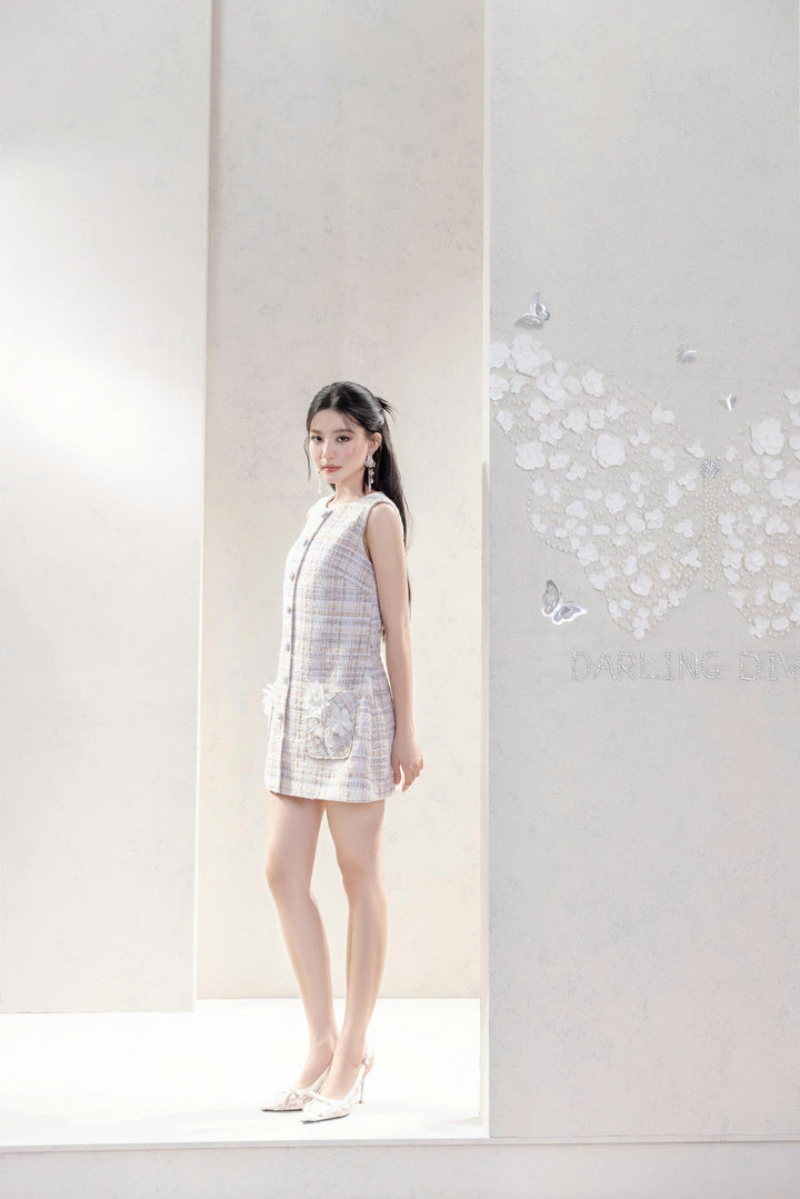 Sự kết hợp giữa sắc trắng thanh khiết và kết cấu tweed cổ điển tạo nên hình ảnh một quý cô đài các, dịu dàng như sương mai nhưng vẫn toát lên nét tự tin, hiện đại.