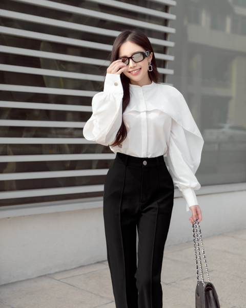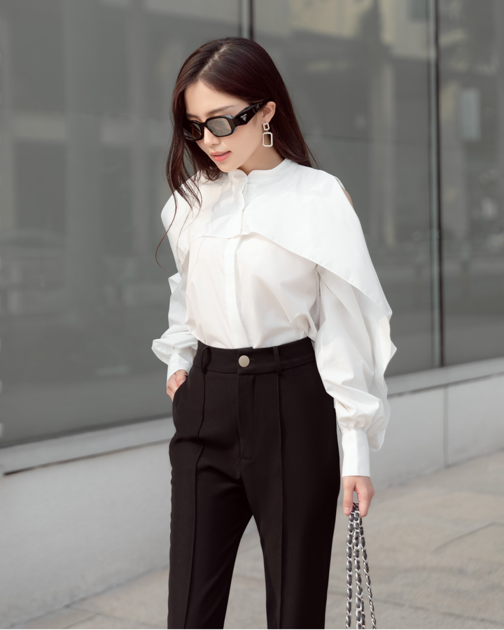 Staty Top - Áo Cổ Trụ Khoét Vai Bèo Rũ