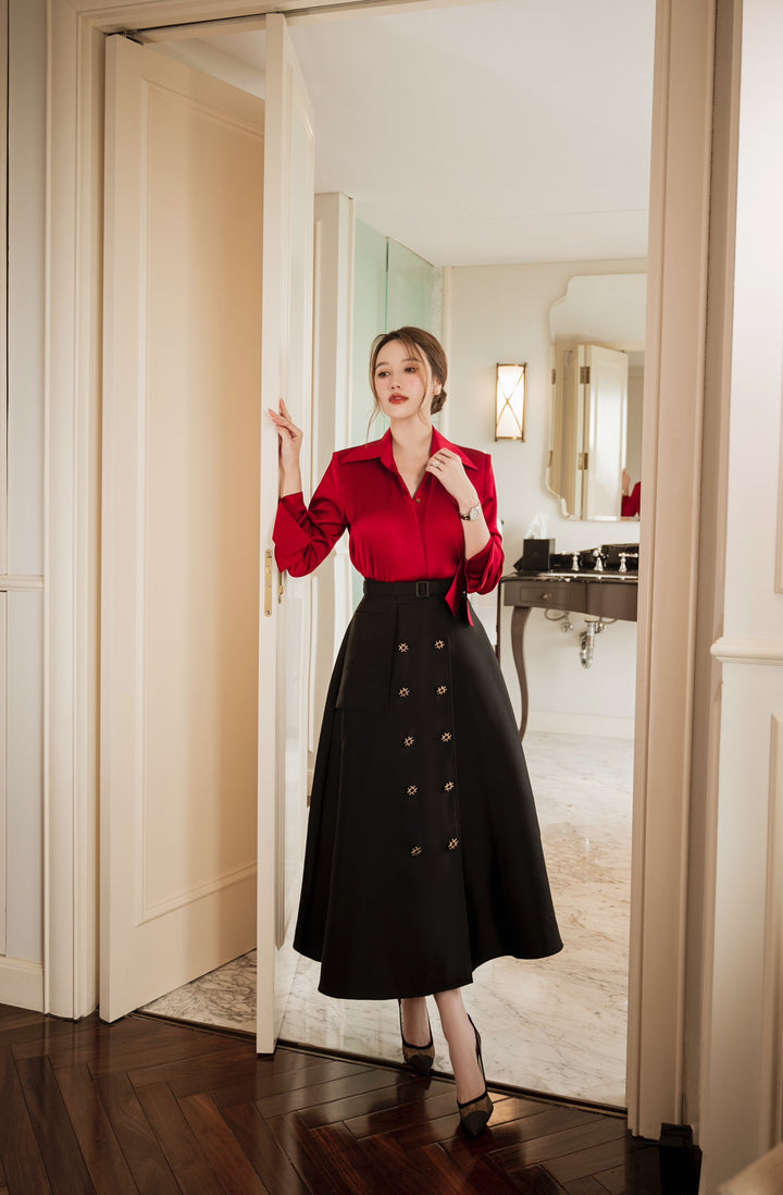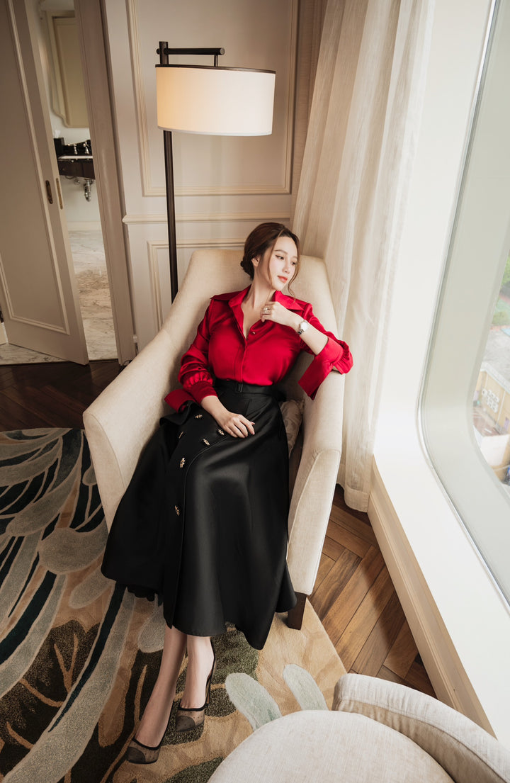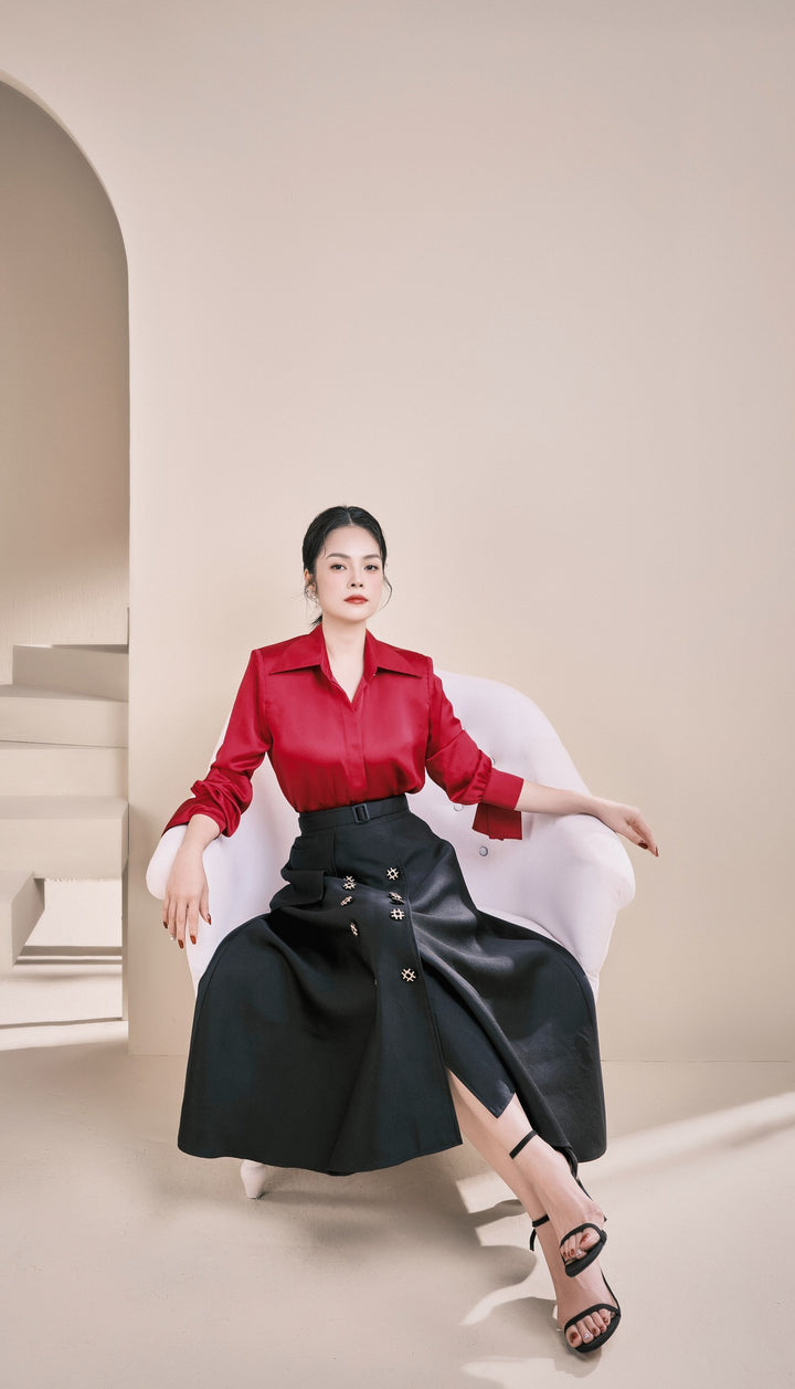 Tegan Skirt - Chân váy chữ A điểm nhấn nút nổi midi