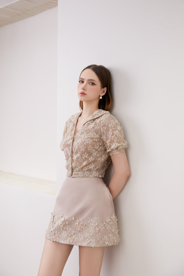 TIPI SET - Áo tay phồng ren cao cấp & chân váy chữ A